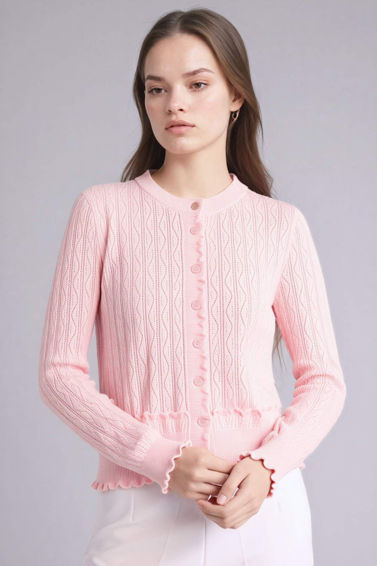 Regular Fıt Bisiklet Yaka Dantelli Hırka