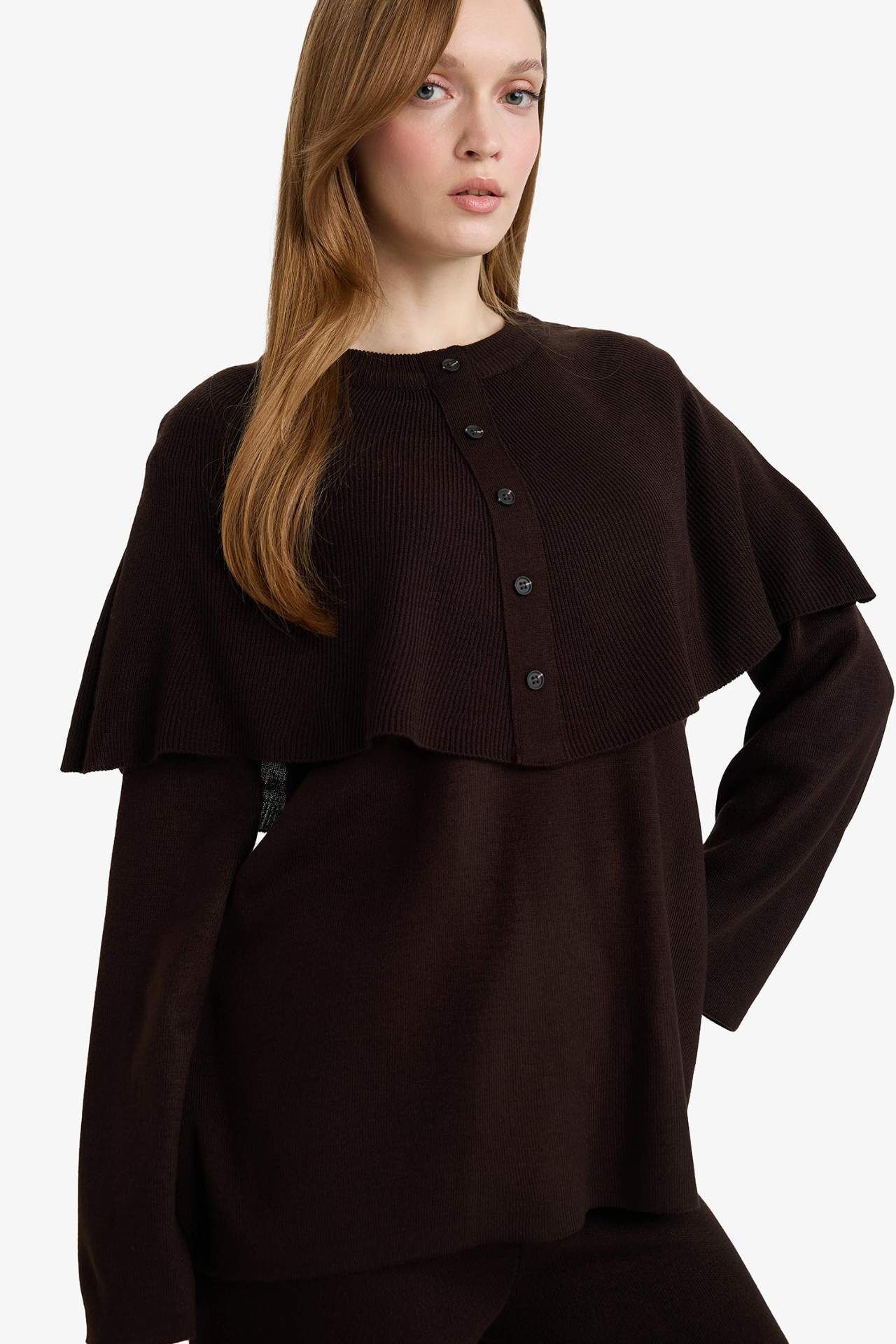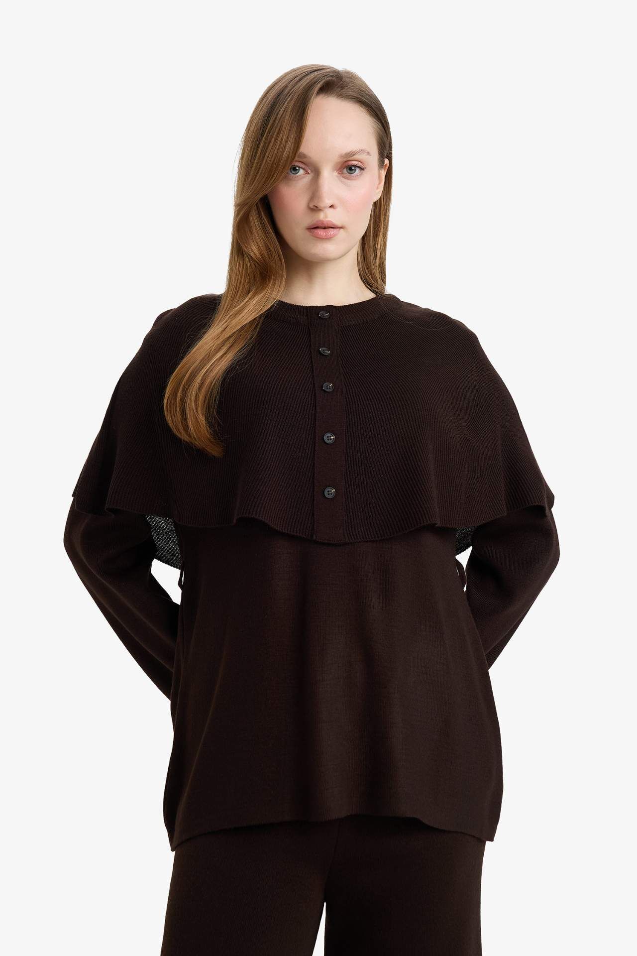 Regular Fit Bisiklet Yaka Düğme Detaylı Triko Tunik