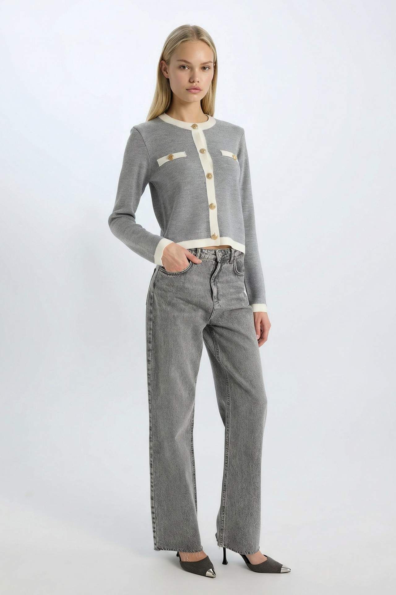 DeFacto Regular Fit Bisiklet Yaka Düğme Kapamalı Basic Düz Triko Hırka C1482AX24WNGR66