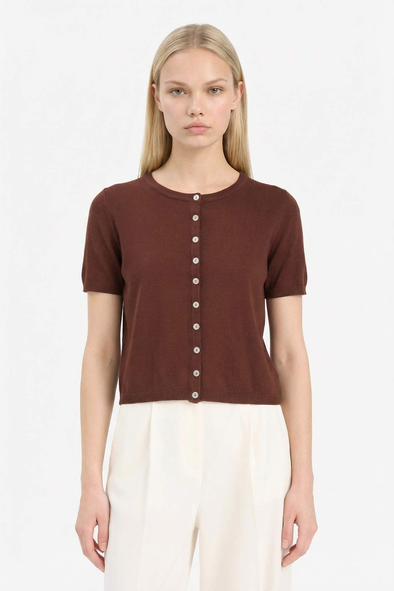 Regular Fit Bisiklet Yaka Düğmeli Kısa Kollu Hırka