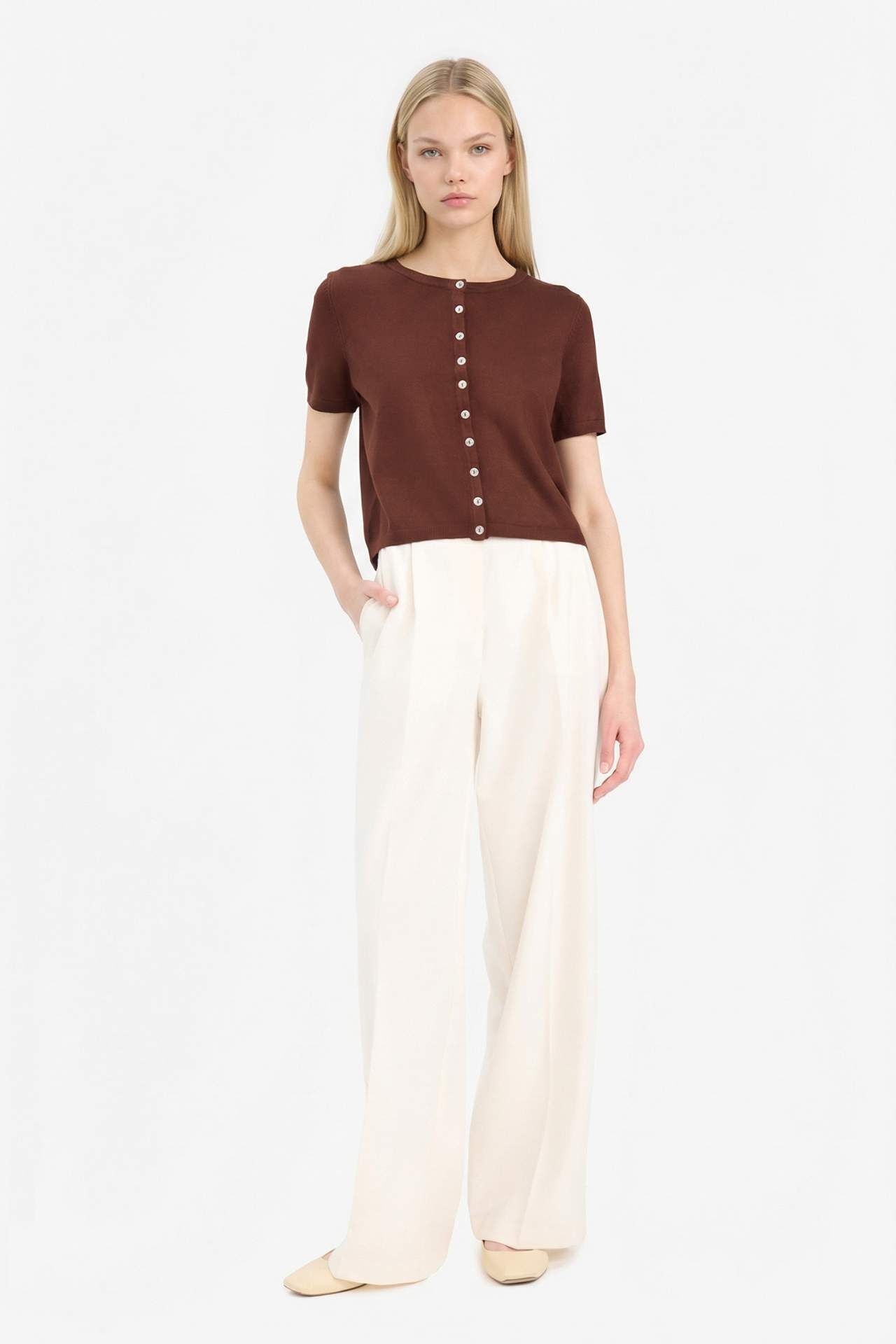 Regular fit kesimi ve bisiklet yaka tasarımıyla rahatlık sunan bu düğmeli kısa kollu hırka, hafif yapısıyla serin havalarda şıklığı tamamlar. Çok yönlü kullanımı sayesinde her kombine kolayca uyum sağlar. Viskoz 72%,Poliester 28%,Viskoz 72%,Poliester 28%,Viskoz 72%,Poliester 28%,Viskoz 72%,Poliester 28%,Viskoz 72%,Poliester 28% Manken Bedeni: Göğüs: 82 Boy: 1,73 Basen: 89 Bel: 60