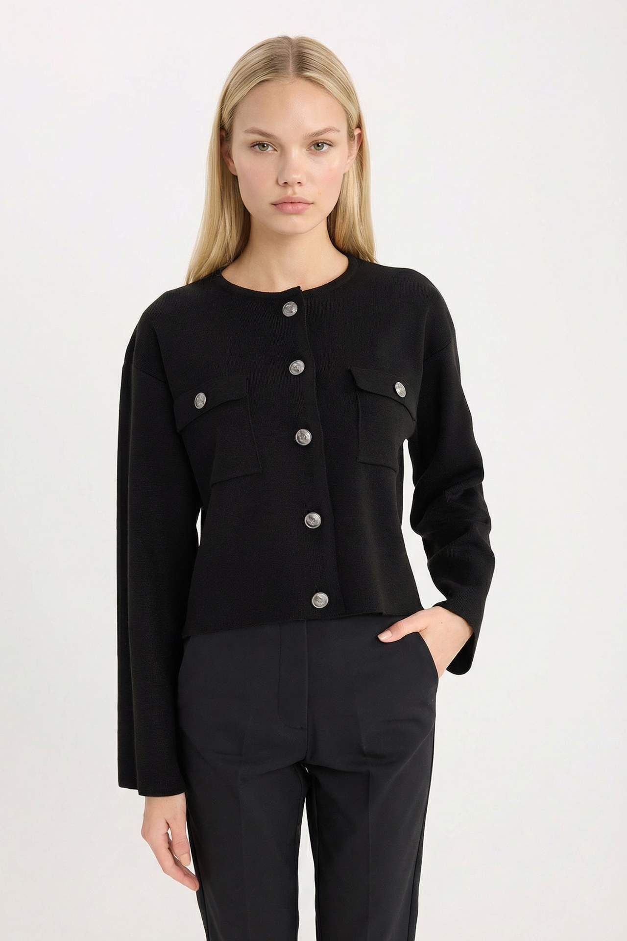 Regular Fit Bisiklet Yaka Düğmeli Triko Hırka
