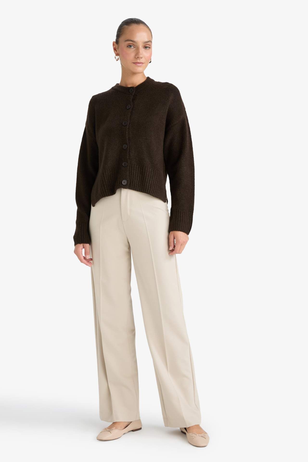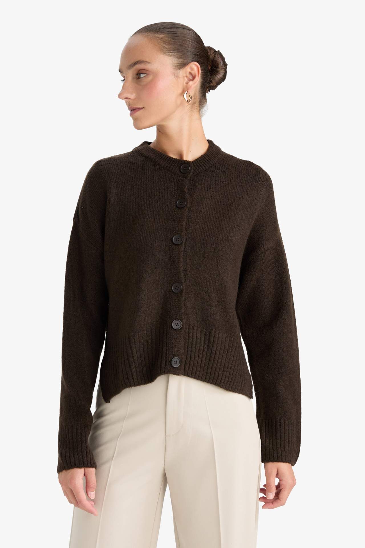 Regular Fit Bisiklet Yaka Düğmeli Triko Hırka