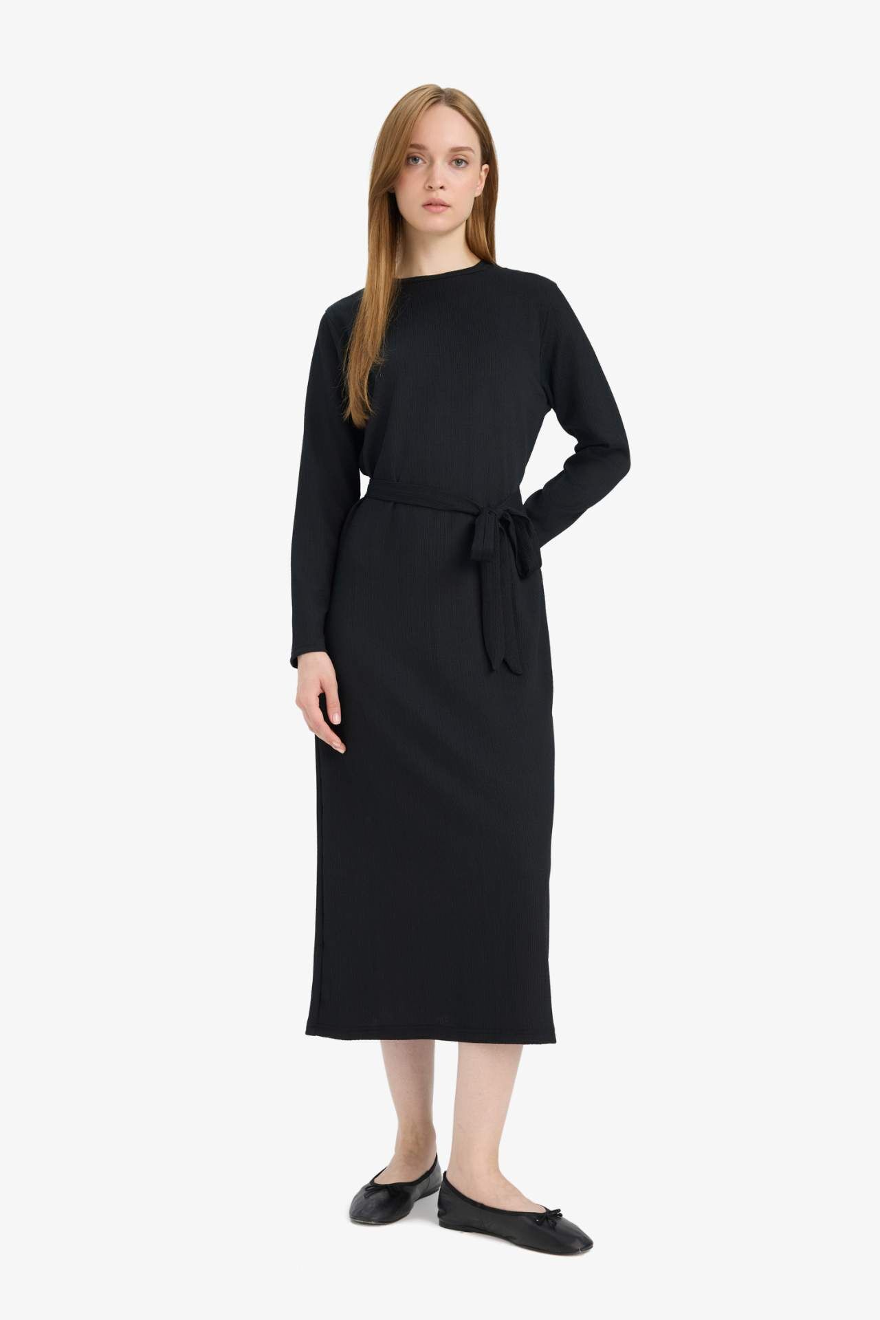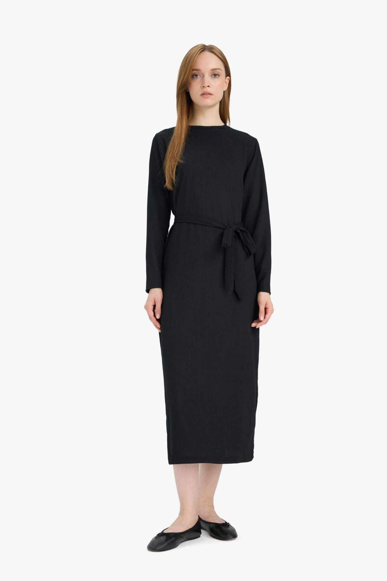 Regular Fit Bisiklet Yaka Bağlamalı Uzun Kollu Maxi Elbise, rahat kesimi ve şık bağlama detayıyla feminen bir duruş sunar. Uzun kollu tasarımıyla her mevsime uygun konfor sağlar. Elastan 1%,Poliester 99%,Elastan 1%,Poliester 99%,Elastan 1%,Poliester 99%,Elastan 1%,Poliester 99%,Elastan 1%,Poliester 99% Manken Bedeni: Göğüs: 84 Boy: 1,74 Basen: 92 Bel: 61