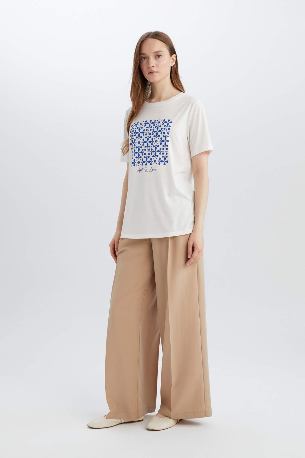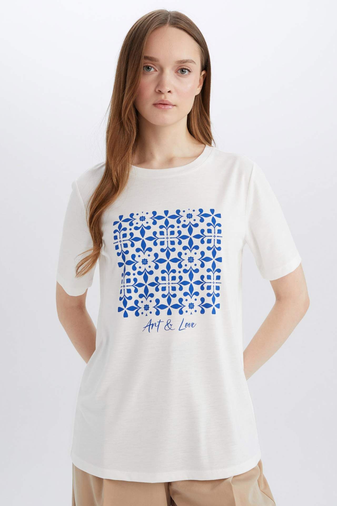 DeFacto Regular Fit Bisiklet Yaka Etnik Desenli Kısa Kollu Tişört E1163AX25SMER105