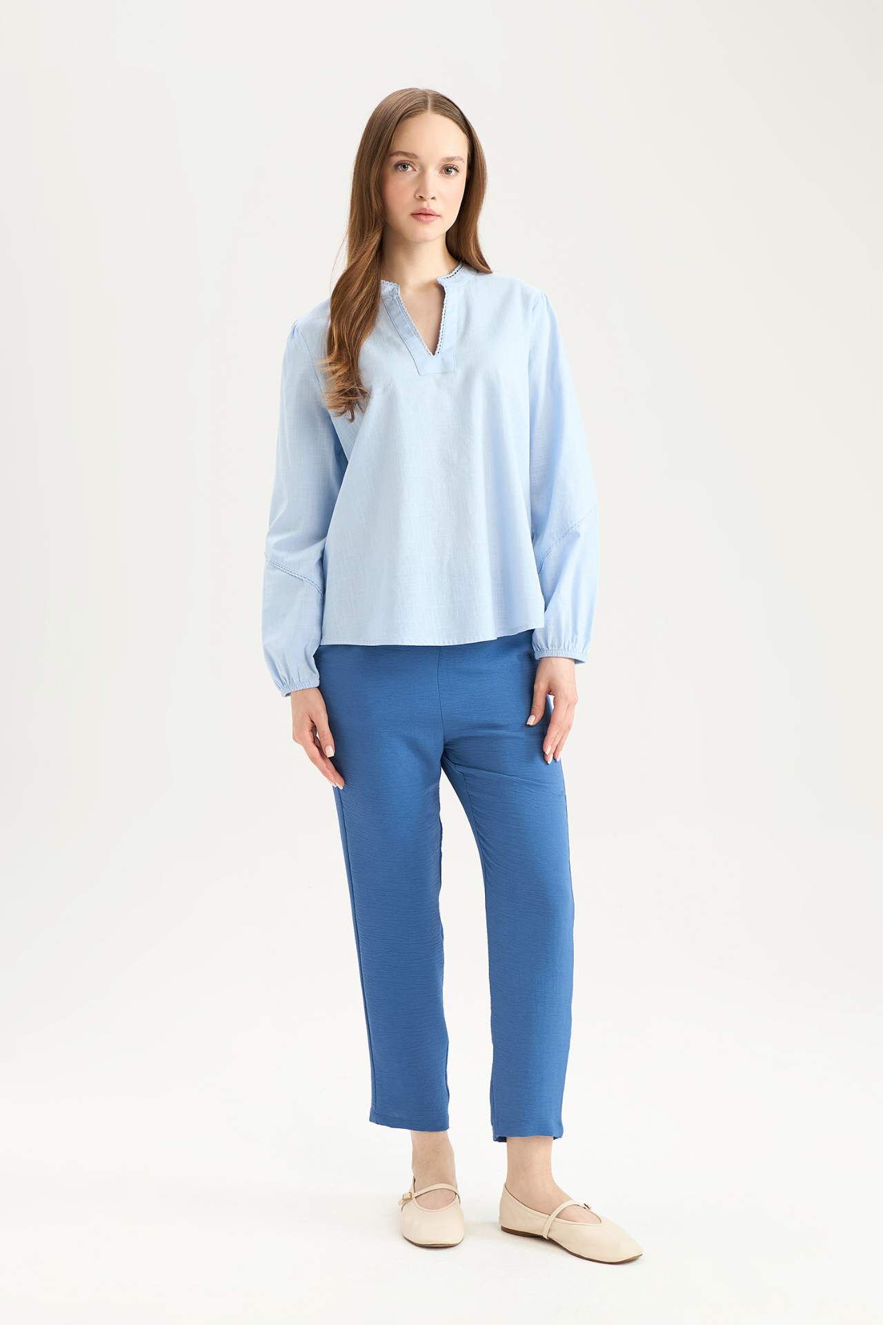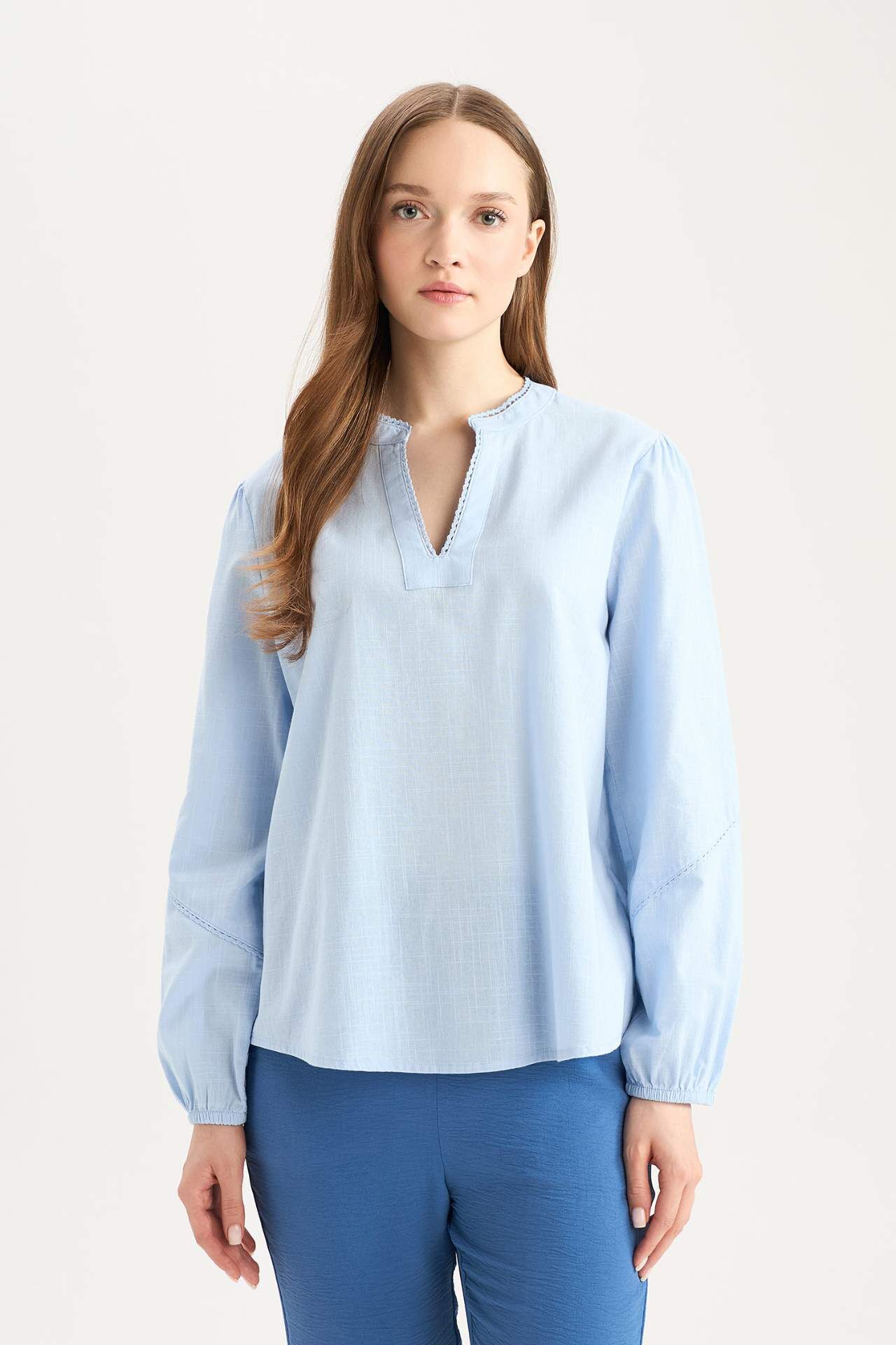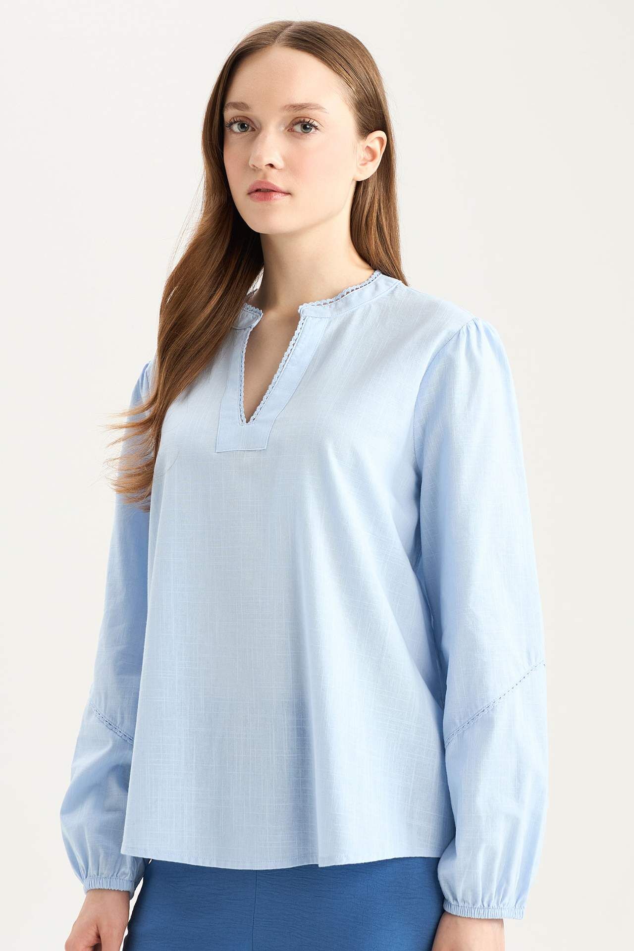Yumuşak flamlı pamuk kumaşıyla gün boyu konfor sunan bu uzun kollu bluz, sade tasarımıyla her tarza kolayca uyum sağlar. Bisiklet yaka detayı ve regular fit kesimiyle günlük şıklığın vazgeçilmez parçalarından biridir. Pamuk 100%,Pamuk 100%,Pamuk 100%,Pamuk 100%,Pamuk 100% Manken Bedeni: Göğüs: 84 Boy: 1,74 Basen: 92 Bel: 61