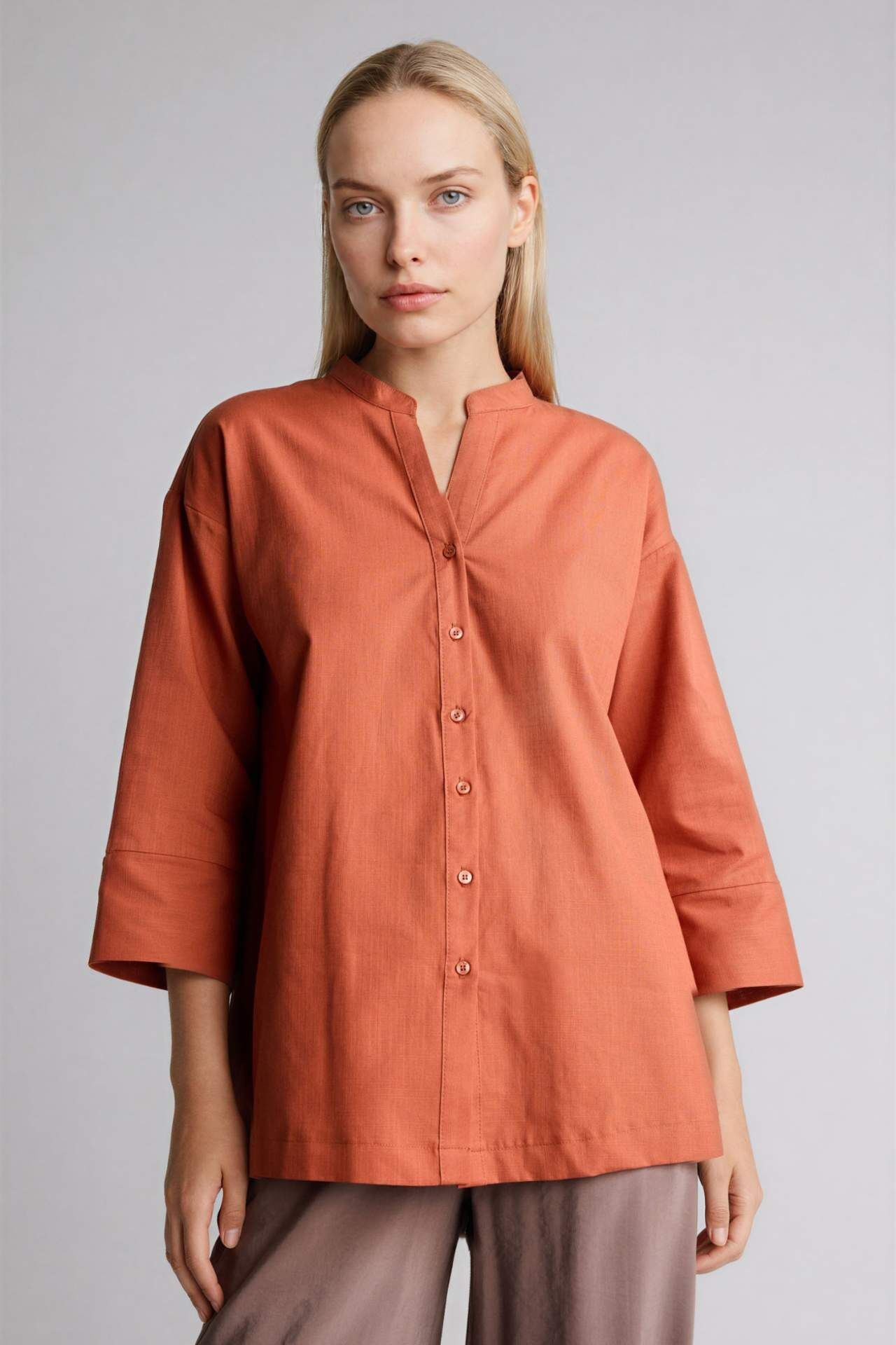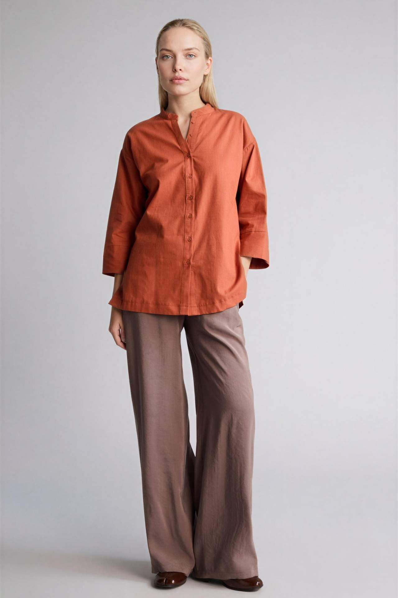DeFacto Regular Fıt Bisiklet Yaka Flamlı Pamuk Uzun Kollu Gömlek