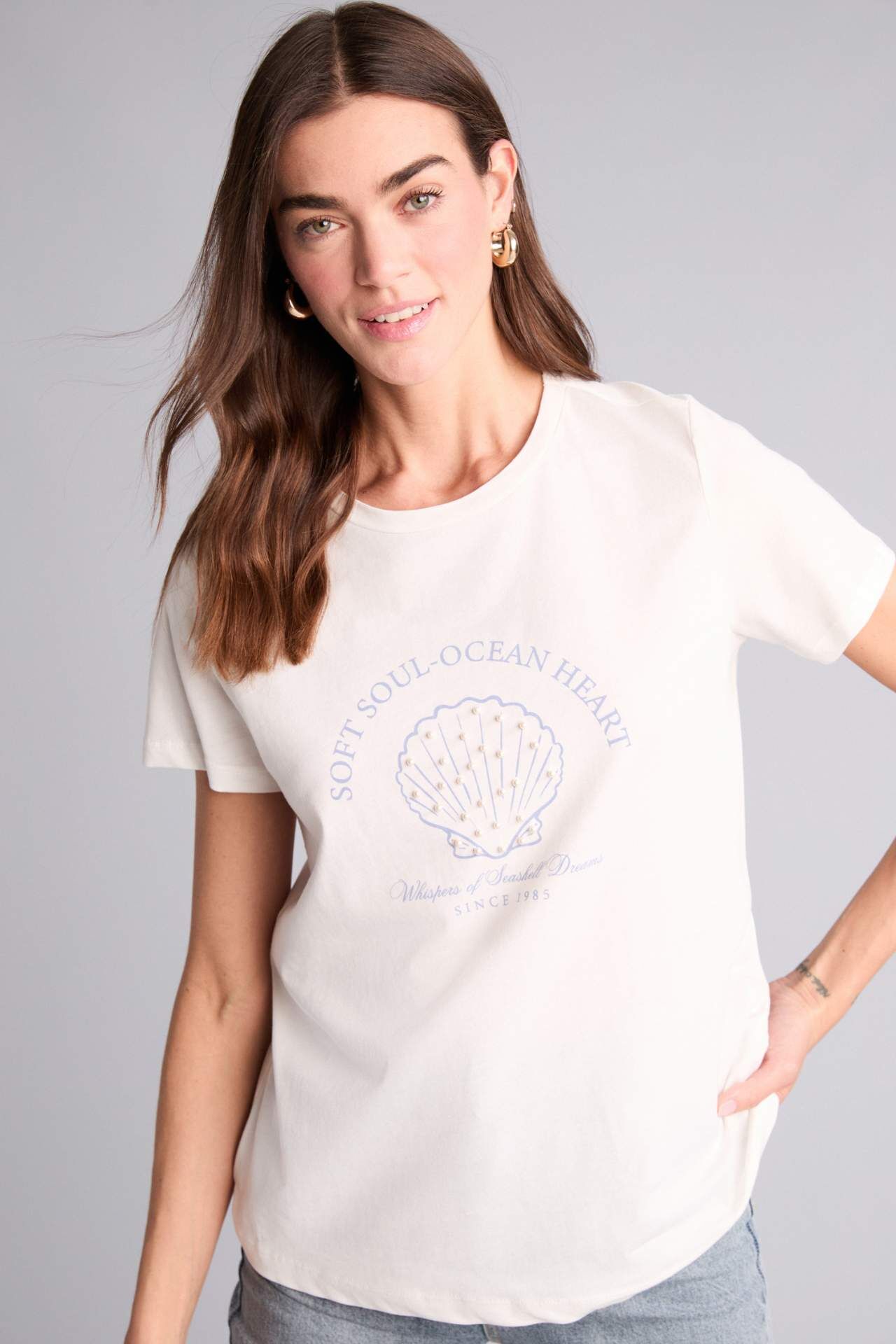 DeFacto Regular Fıt Bisiklet Yaka İşlemeli Kısa Kollu Tişört