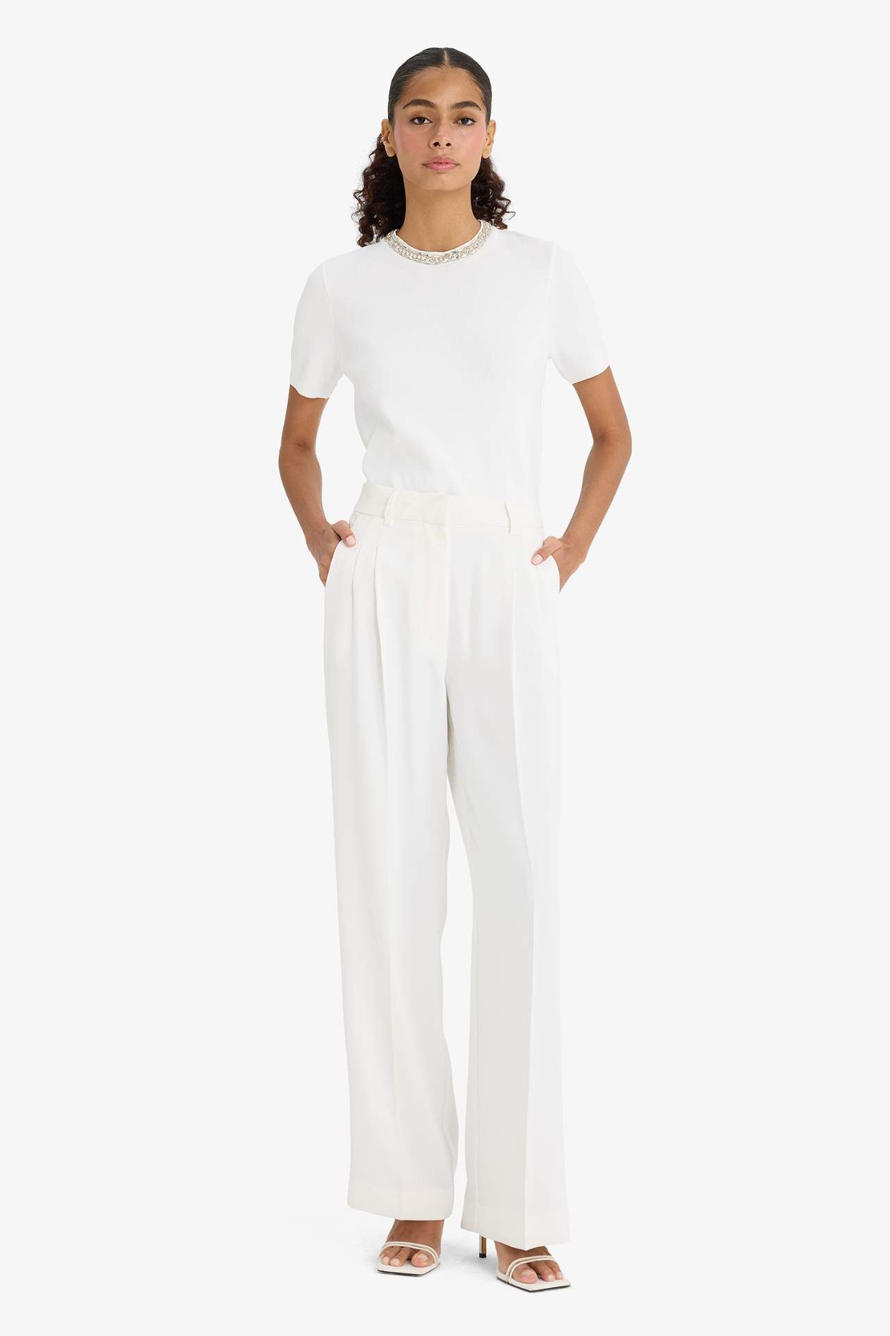 Regular fit bisiklet yaka işlemeli krep kazak, zarif işlemeleri ve rahat kesimiyle şıklığı günlük stilinize taşır. Krep kumaşı sayesinde hem hafif hem de konforlu bir kullanım sunar. Poliester 100%,Poliester 100%,Poliester 100%,Poliester 100%,Poliester 100%,Poliester 100% Manken Bedeni: Göğüs: 82 Boy: 1,74 Basen: 89 Bel: 59