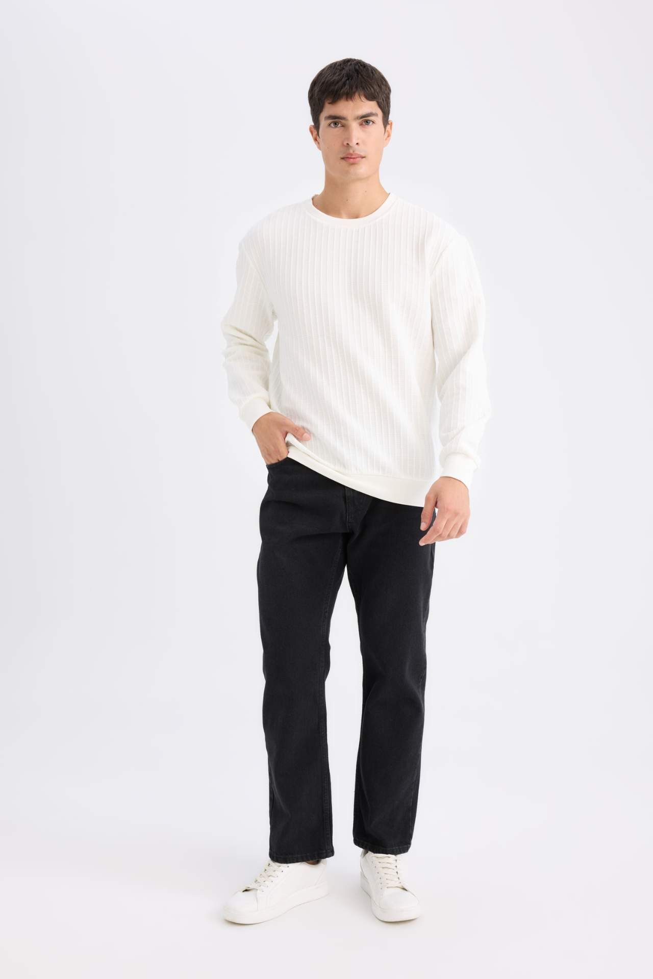 DeFacto Regular Fit Bisiklet Yaka Jakarlı Sweatshirt D5391AX24AUWT32