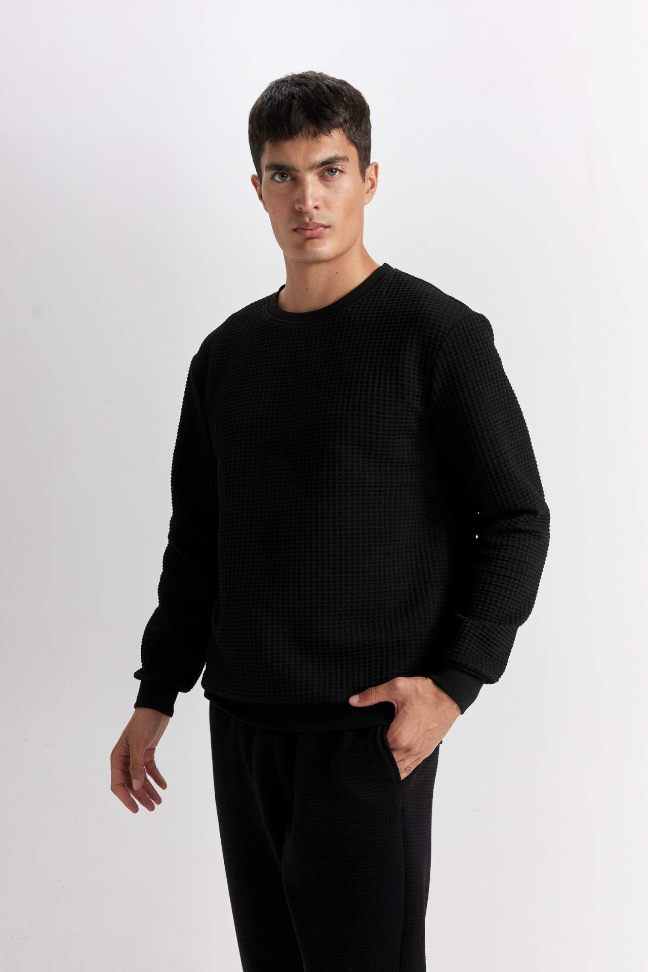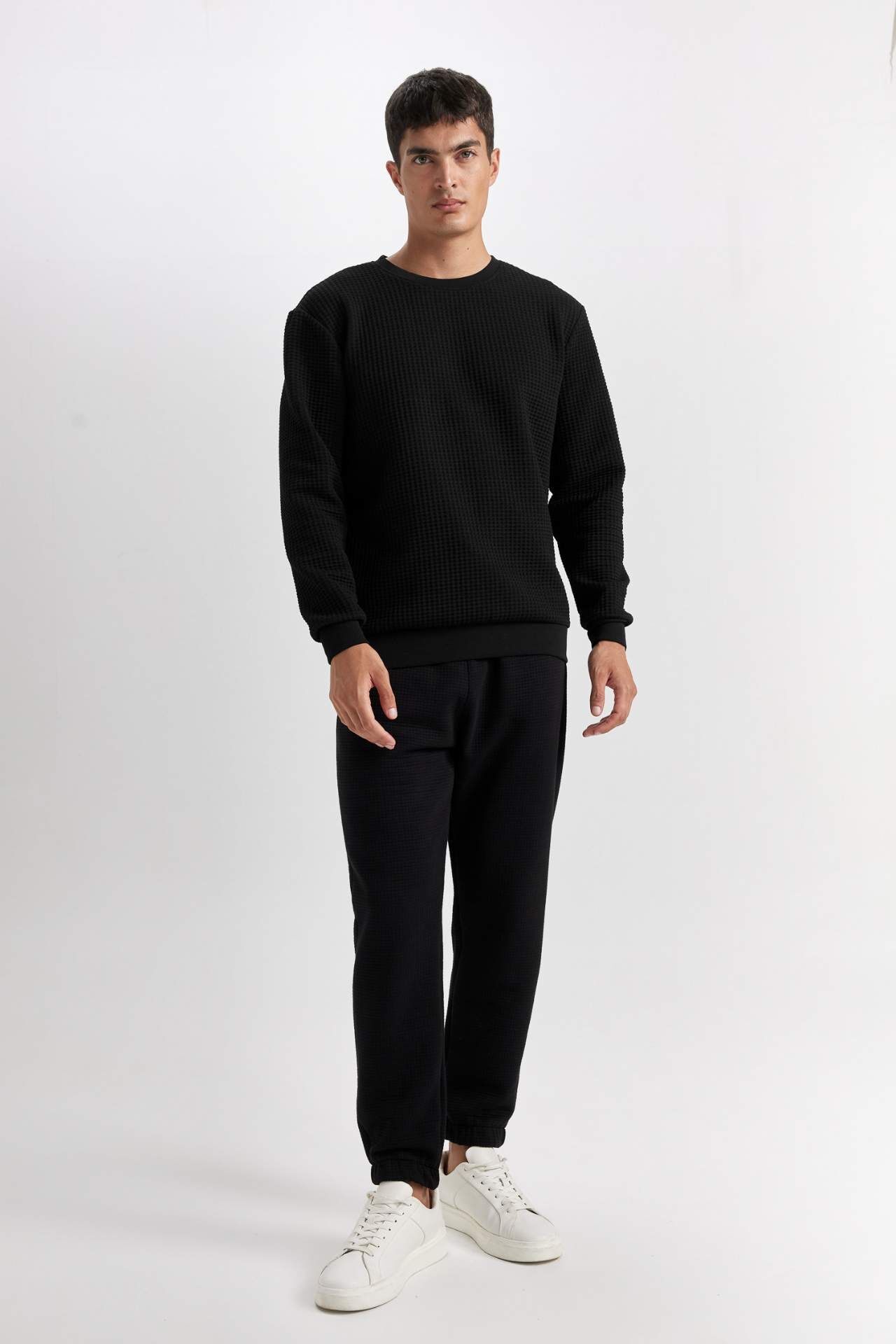 DeFacto Regular Fit Bisiklet Yaka Jakarlı Sweatshirt D5392AX24AUBK27