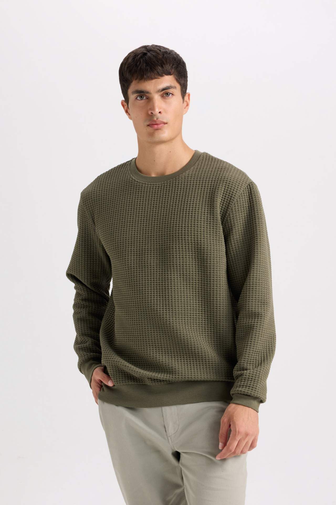 DeFacto Regular Fit Bisiklet Yaka Jakarlı Sweatshirt D5392AX24AUKH261