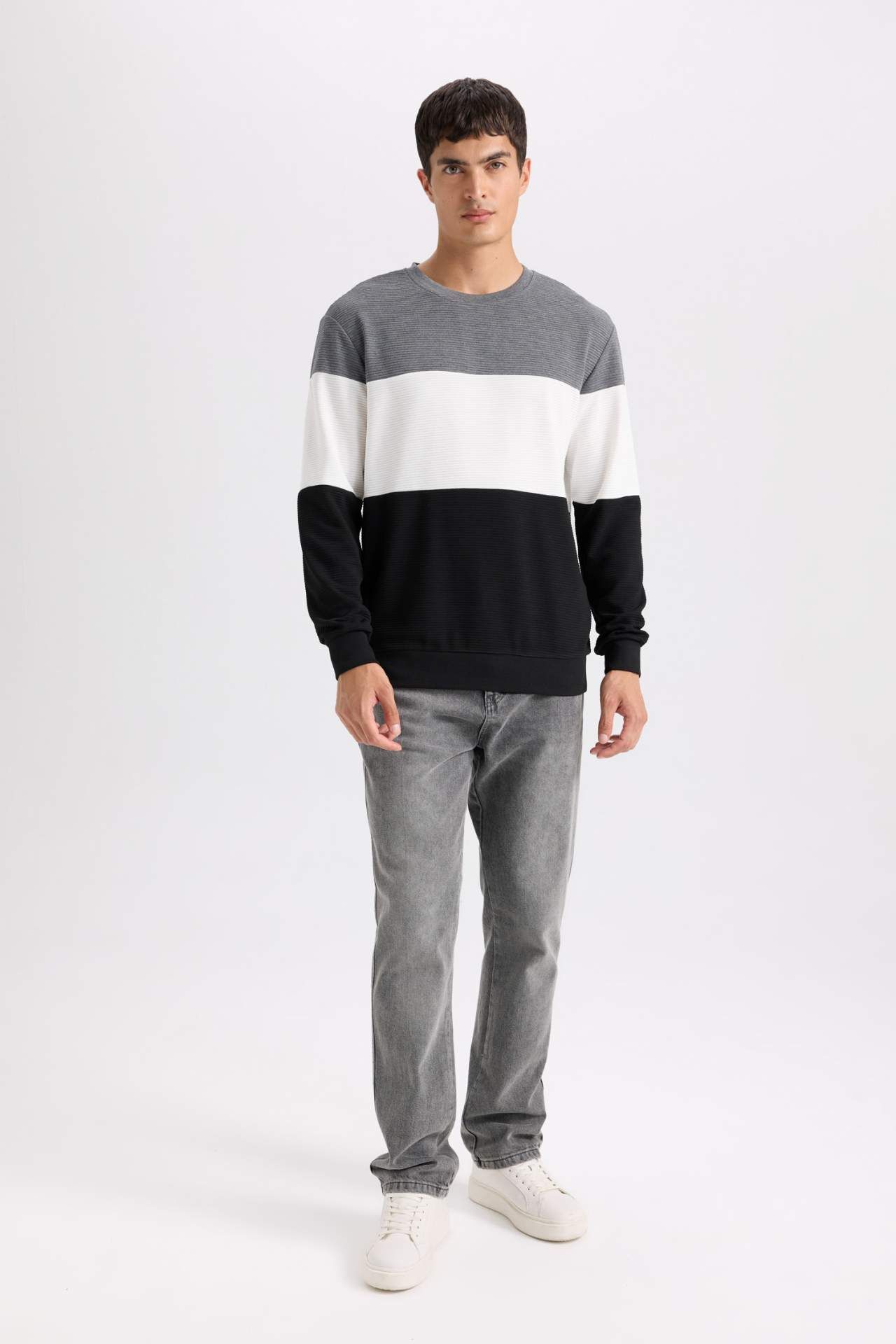 DeFacto Regular Fit Bisiklet Yaka Jakarlı Sweatshirt D5393AX24AUBK27
