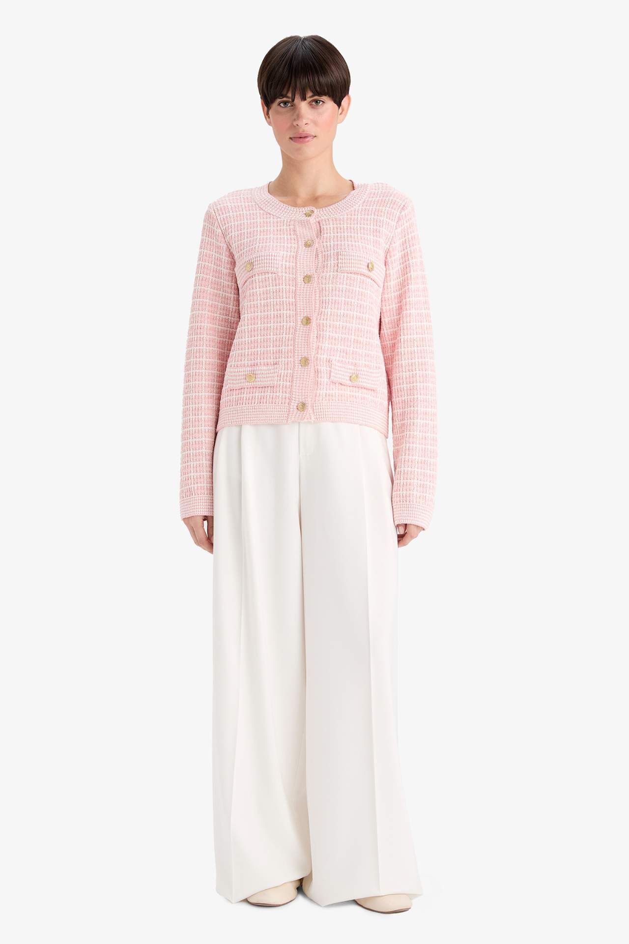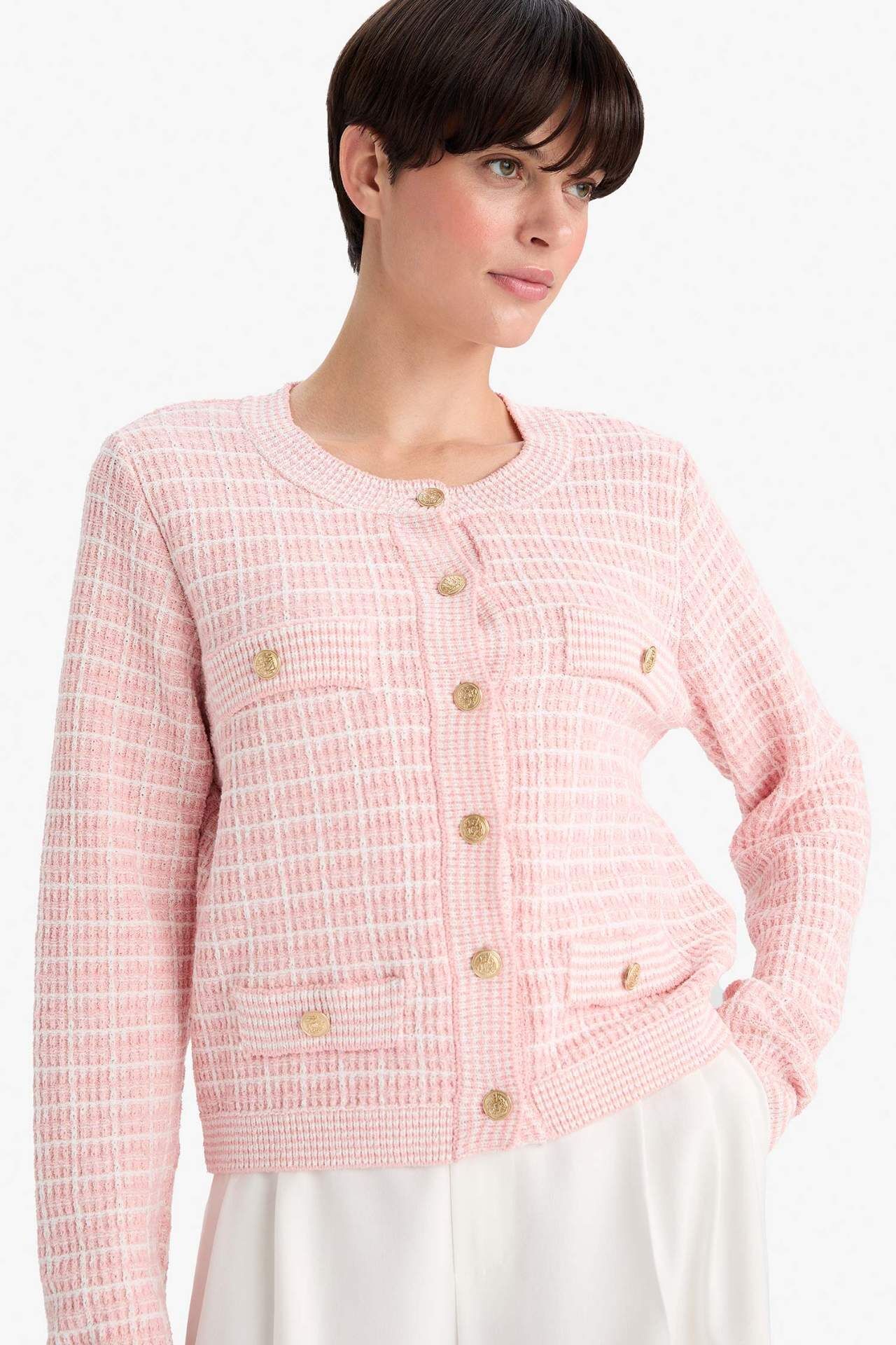 Regular Fit Bisiklet Yaka Kareli Triko Hırka