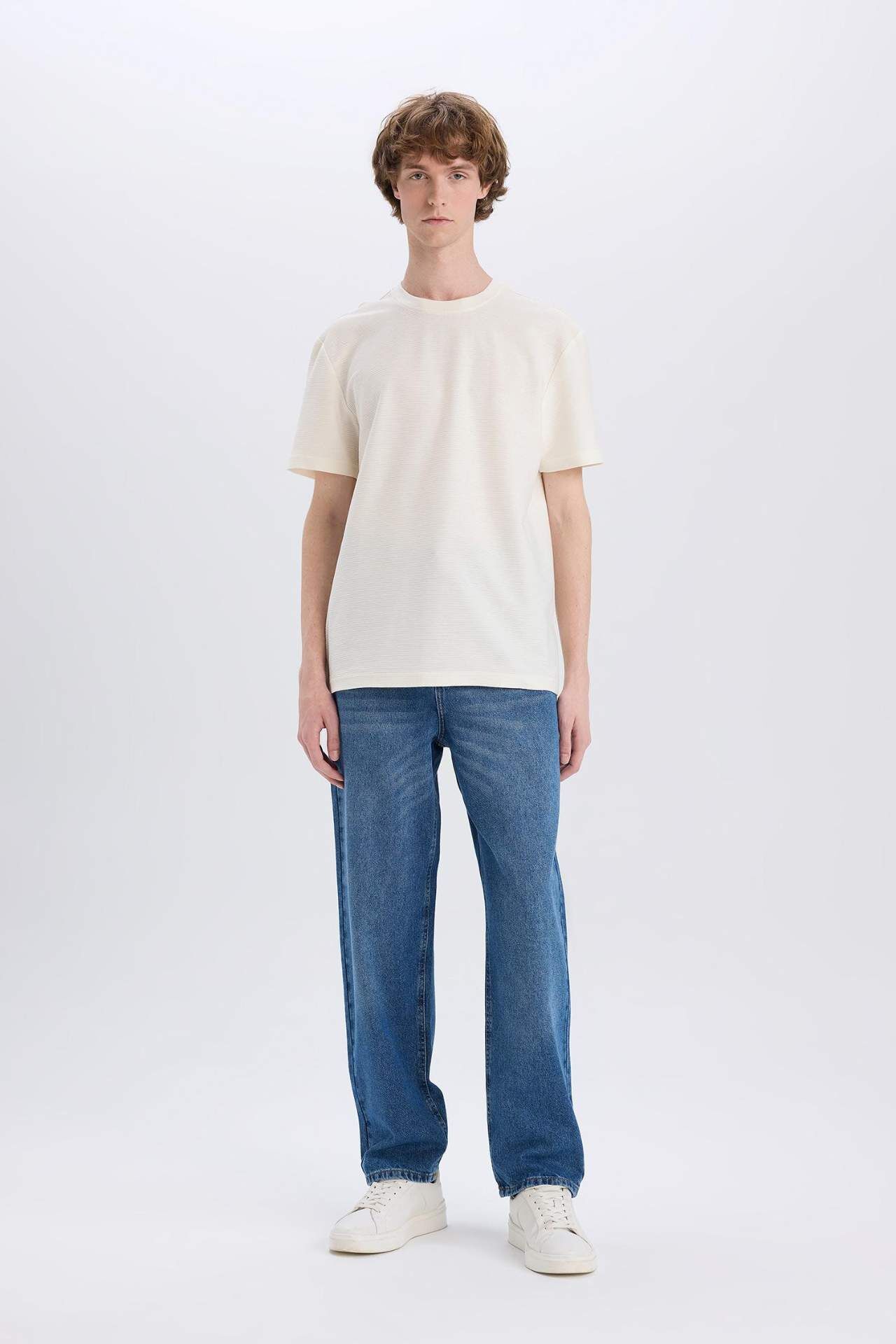 Regular Fit Bisiklet Yaka Kısa Kollu Dokulu Twill Tişört