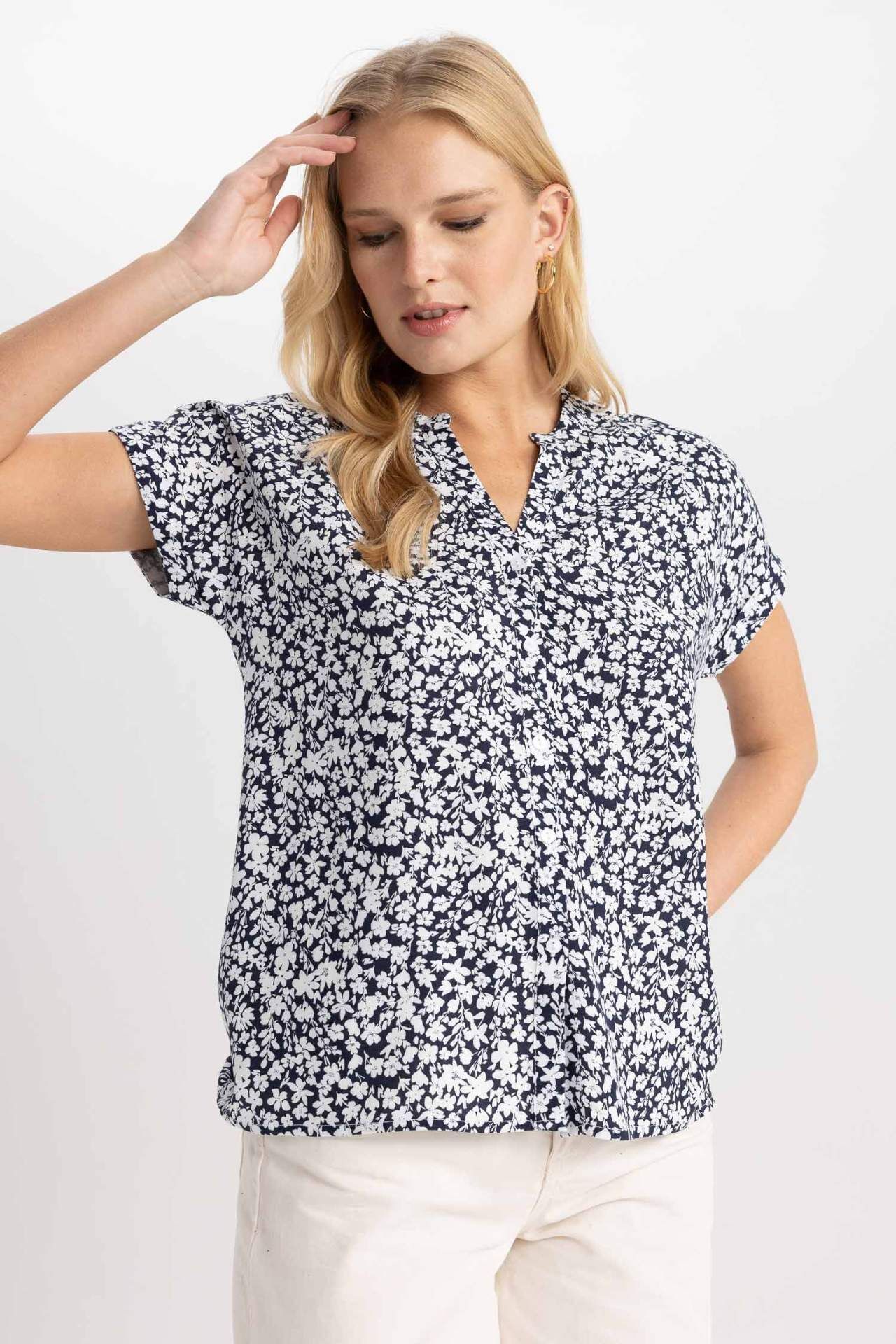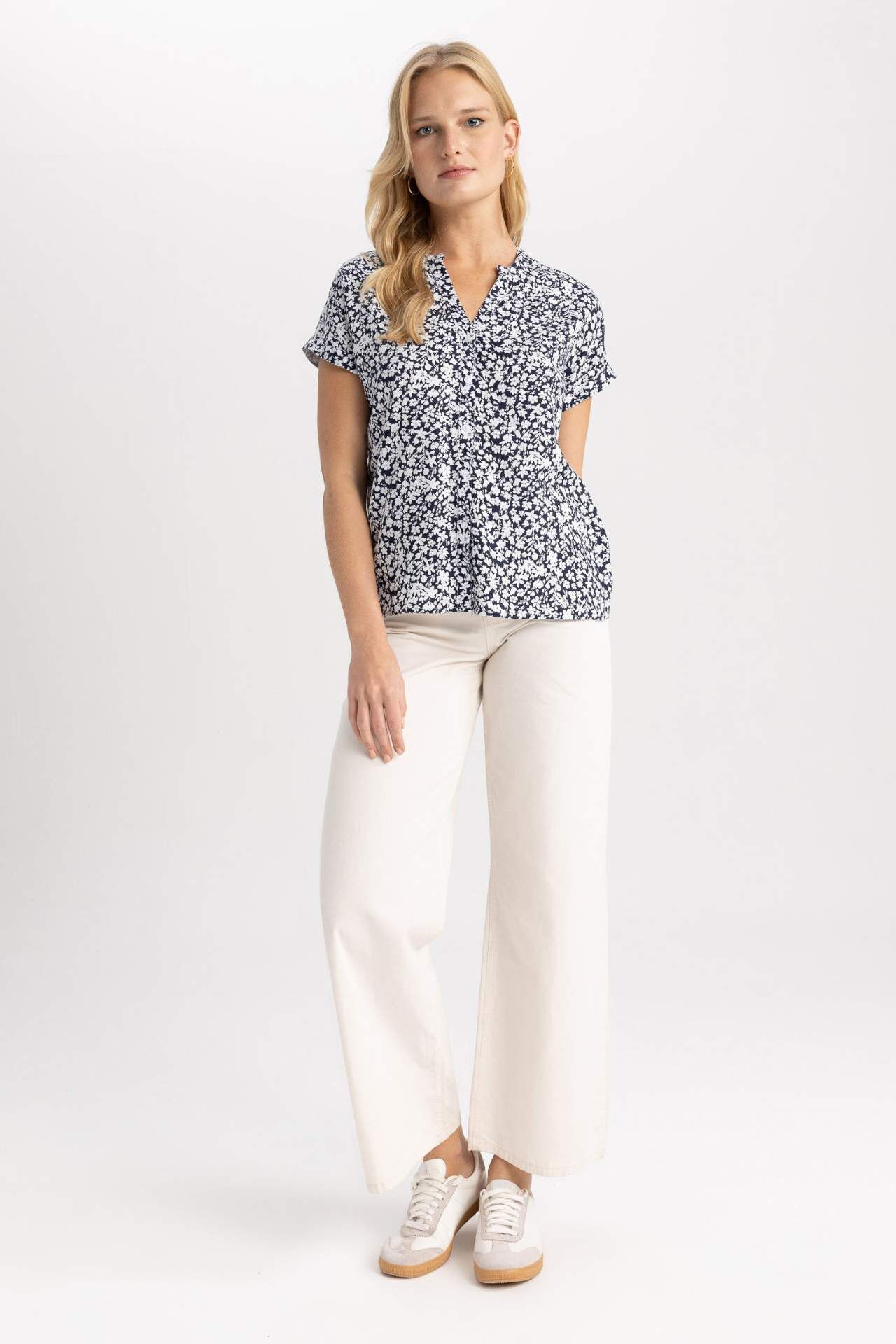 DeFacto Regular Fit Bisiklet Yaka Kısa Kollu Gömlek Lacivert