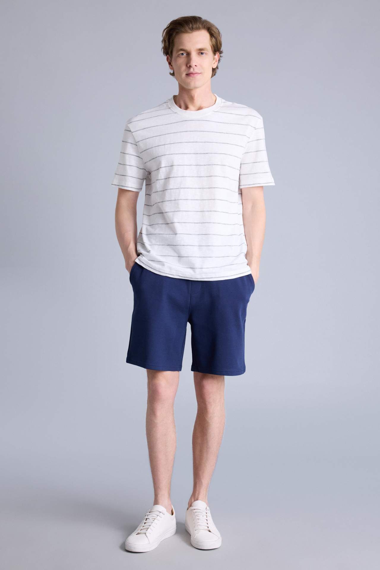 Modern ve dengeli bir silüet sunan Regular Fit kesimiyle klasik şıklığı konforla birleştirir. Bisiklet yaka detayının kazandırdığı maskülen duruş ve zamansız çizgili desenin sağladığı dinamik hava, vücut hatlarını kısıtlamayan ideal kalıbıyla birleşerek hem tek başına hem de katmanlı kombinlerde çok yönlü bir kullanım sunar. Pamuk 97%,Viskoz 1%,Poliester 2% Manken Bedeni: Göğüs: 98 Boy: 1,86 Basen: 99 Bel: 78
