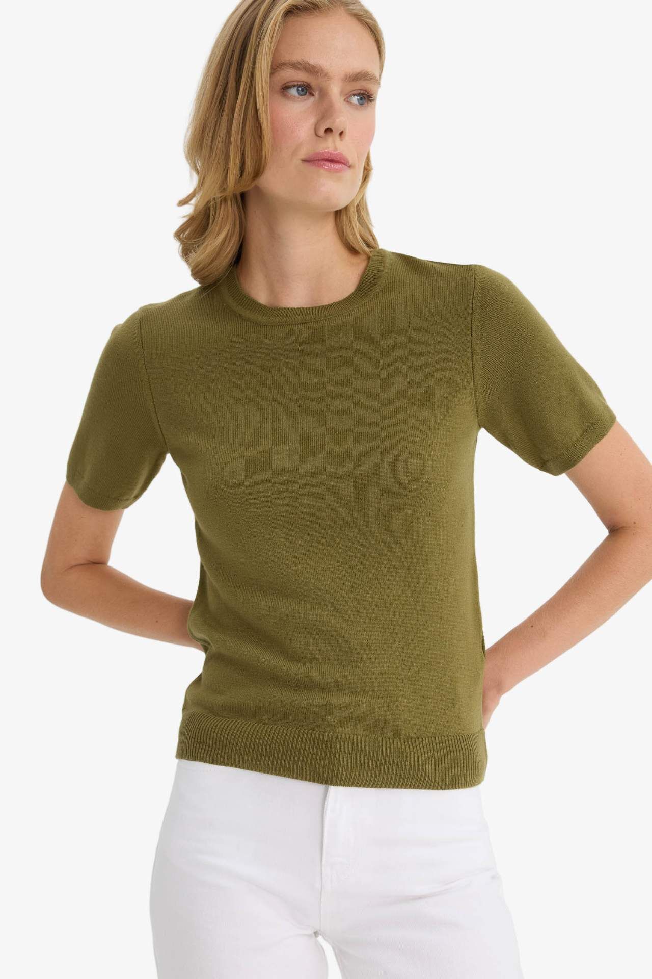 Regular Fit Bisiklet Yaka Kısa Kollu Triko Kazak