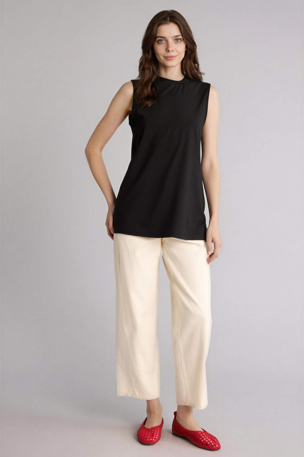 DeFacto Regular Fıt Bisiklet Yaka Kısa Kollu Tunik