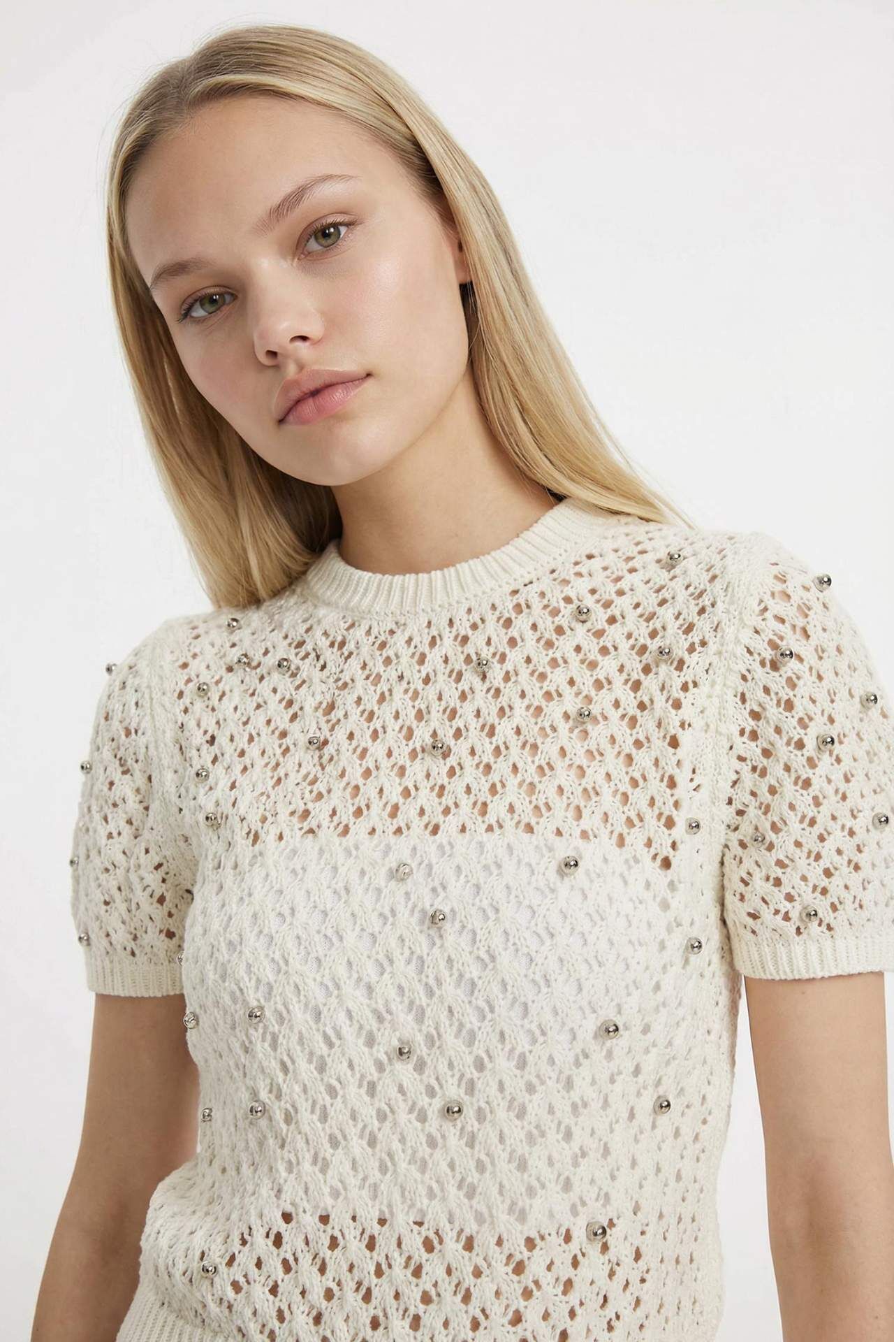 DeFacto Regular Fit Bisiklet Yaka Kroşe Kısa Kollu Kazak