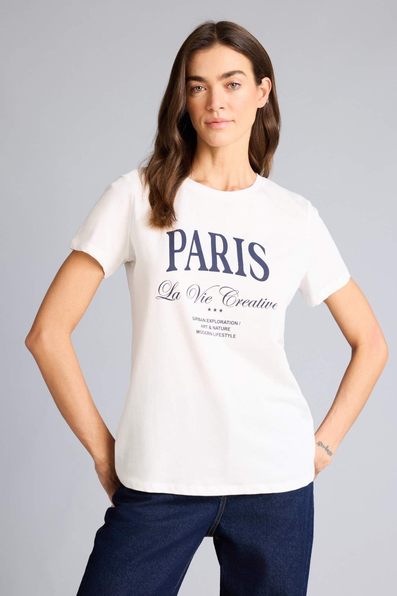 Regular Fit Baskılı Penye Tişört, rahat kesimi ve yumuşak penye kumaşıyla gün boyu konfor sağlar. Canlı baskı detayları, günlük kombinlerinize enerjik ve modern bir dokunuş katar. Pamuk 100% Manken Bedeni: Göğüs: 89 Boy: 1,78 Basen: 92 Bel: 63