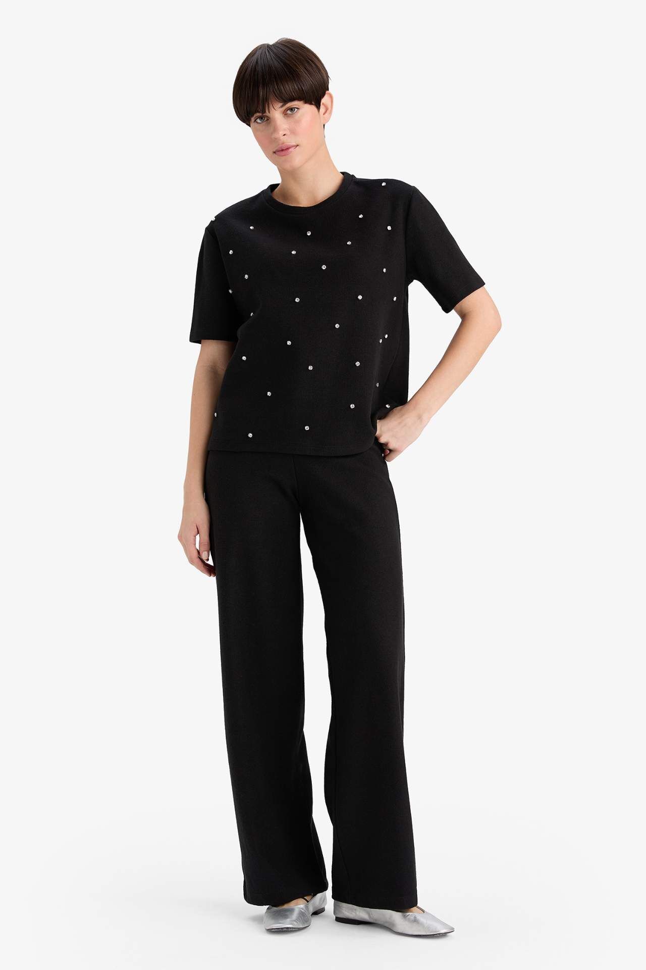 Regular Fit Bisiklet Yaka Puantiyeli Kısa Kollu Tişört