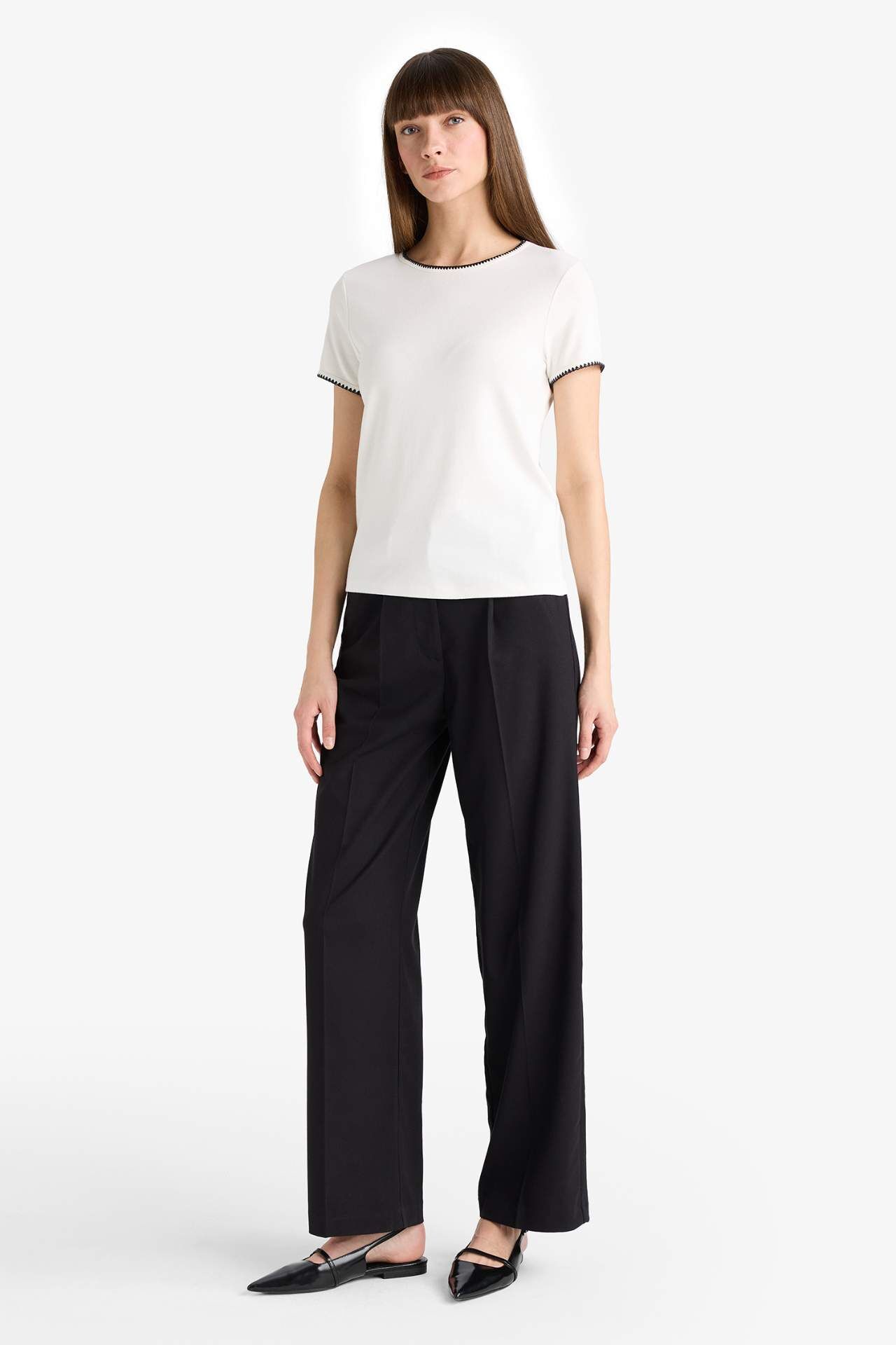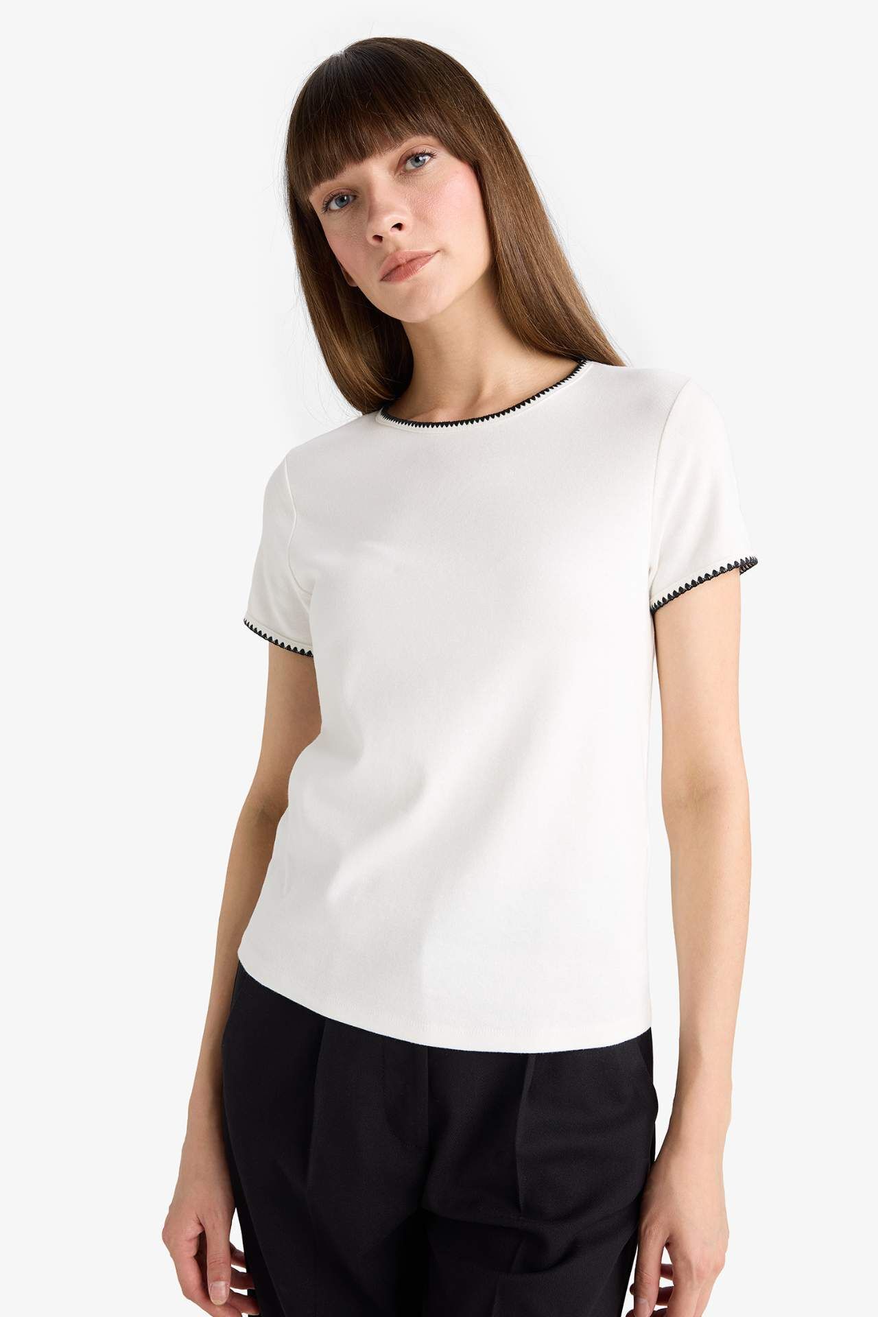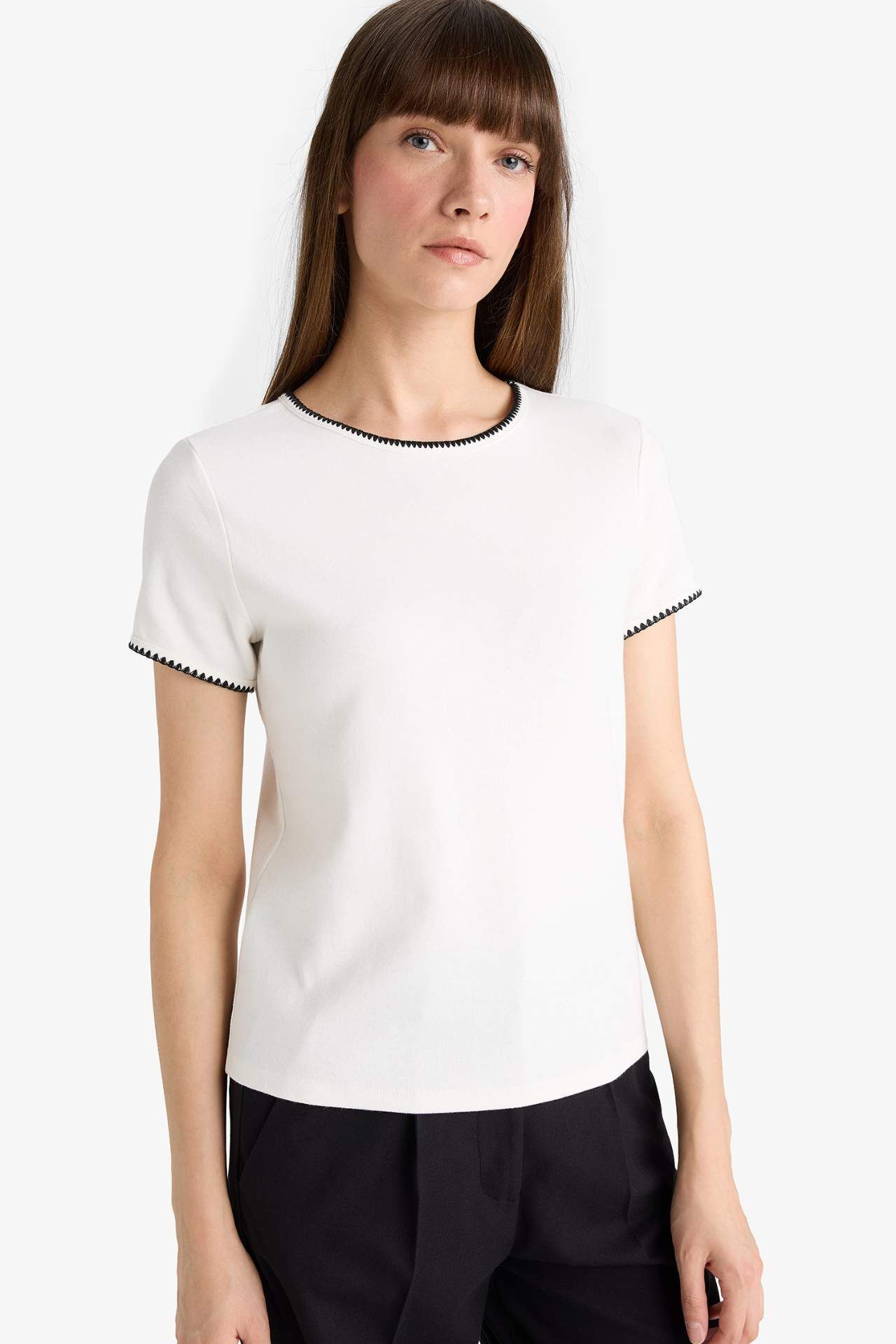 Regular Fit Bisiklet Yaka Ribana Kısa Kollu Tişört F9831AX25AUER105