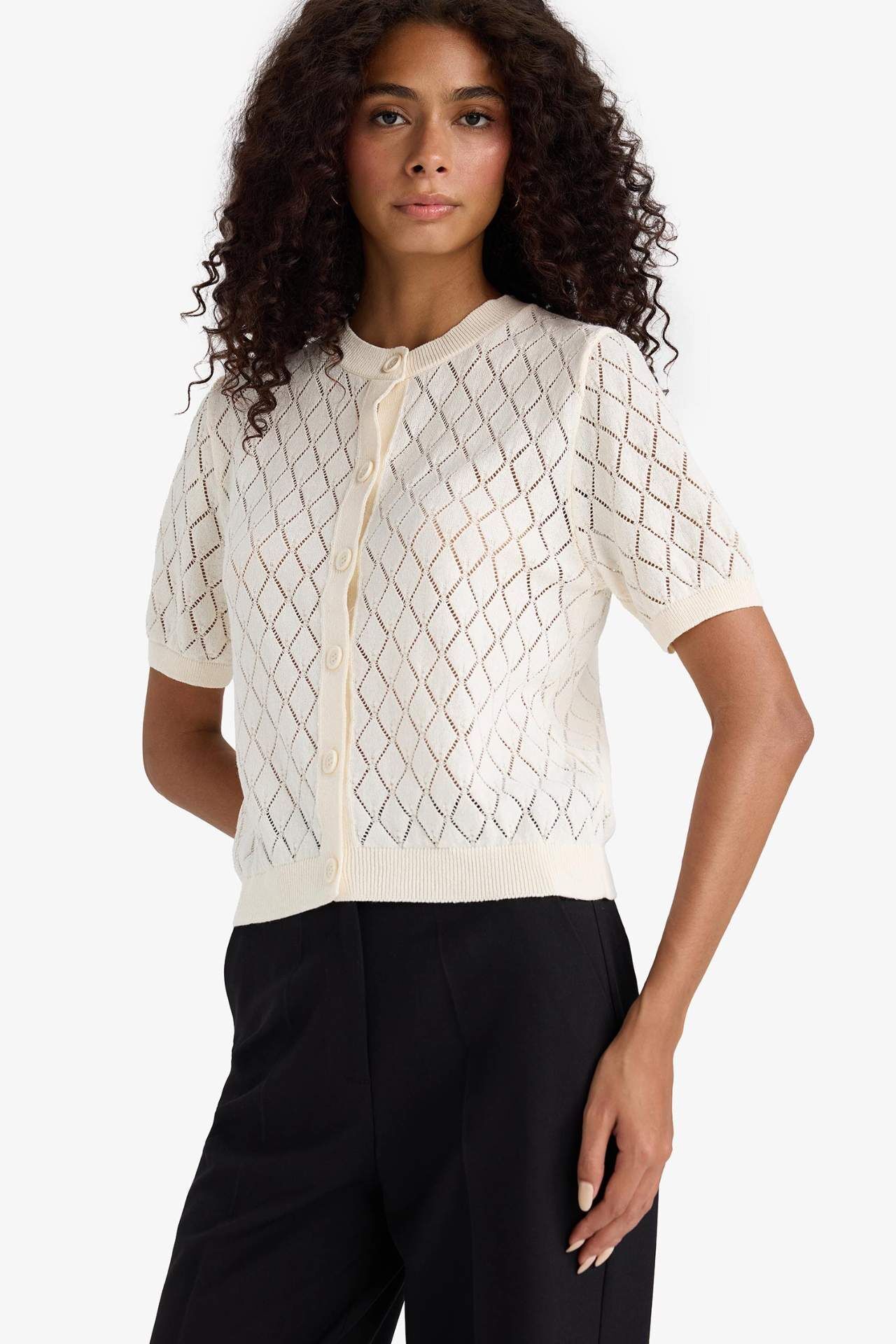 Yetişkin kadınlar için ideal olan bu ekru renkli triko hırka, ilkbahar ve yaz aylarında tercih edebileceğiniz ince kalınlıkta bir üründür. Bisiklet yaka detayı ve kısa kollu tasarımıyla hem şık hem de rahat bir görünüm sunar. Temel çeşit triko hırka, şıklığınıza şıklık katacak. Pamuk 59%,Poliester 41%,Pamuk 59%,Poliester 41%,Pamuk 59%,Poliester 41%,Pamuk 59%,Poliester 41%,Pamuk 59%,Poliester 41%,Pamuk 59%,Poliester 41% Manken Bedeni: Göğüs: 81 Boy: 1,79 Basen: 88 Bel: 59