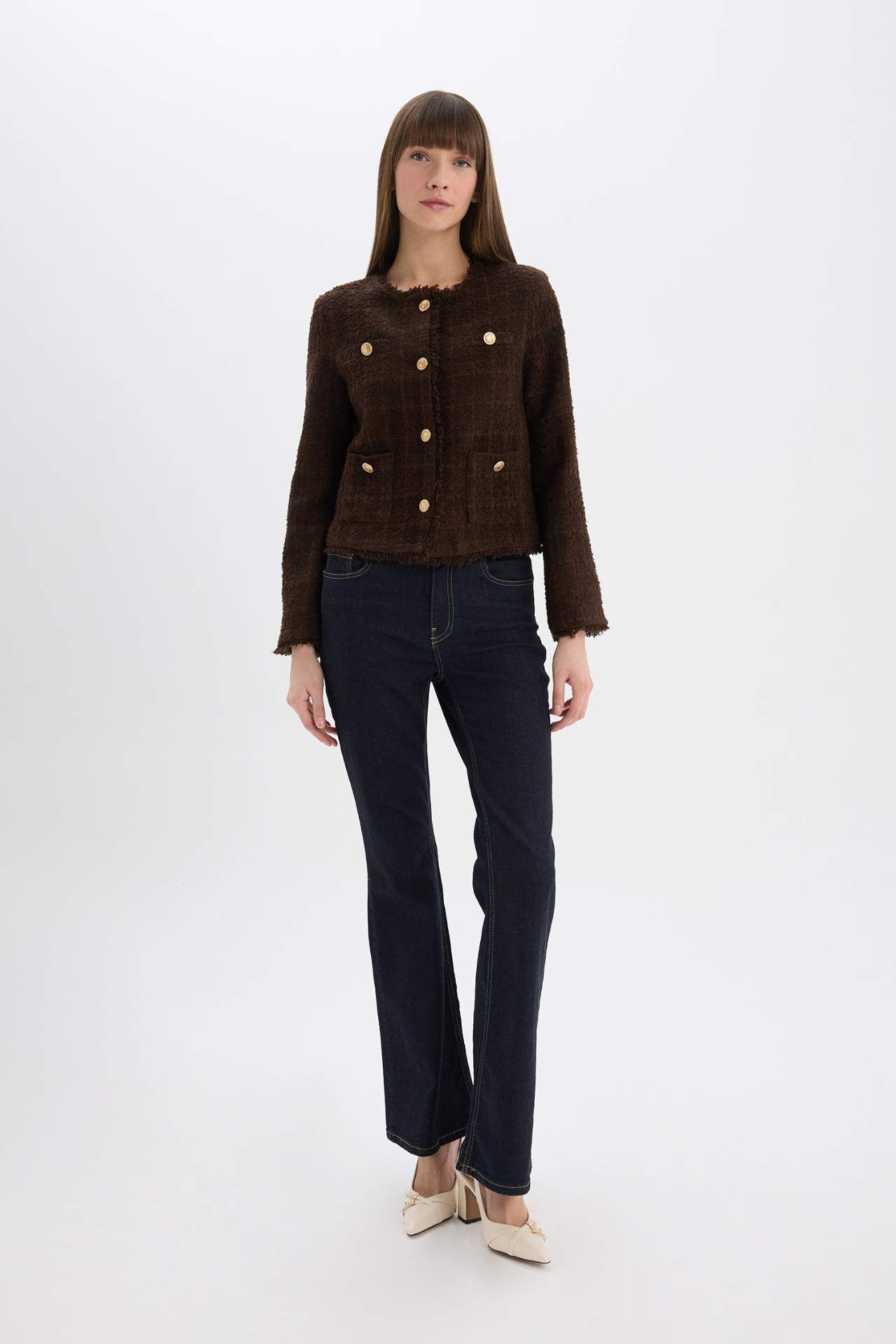 Regular Fit Bisiklet Yaka Tweed Blazer Ceket