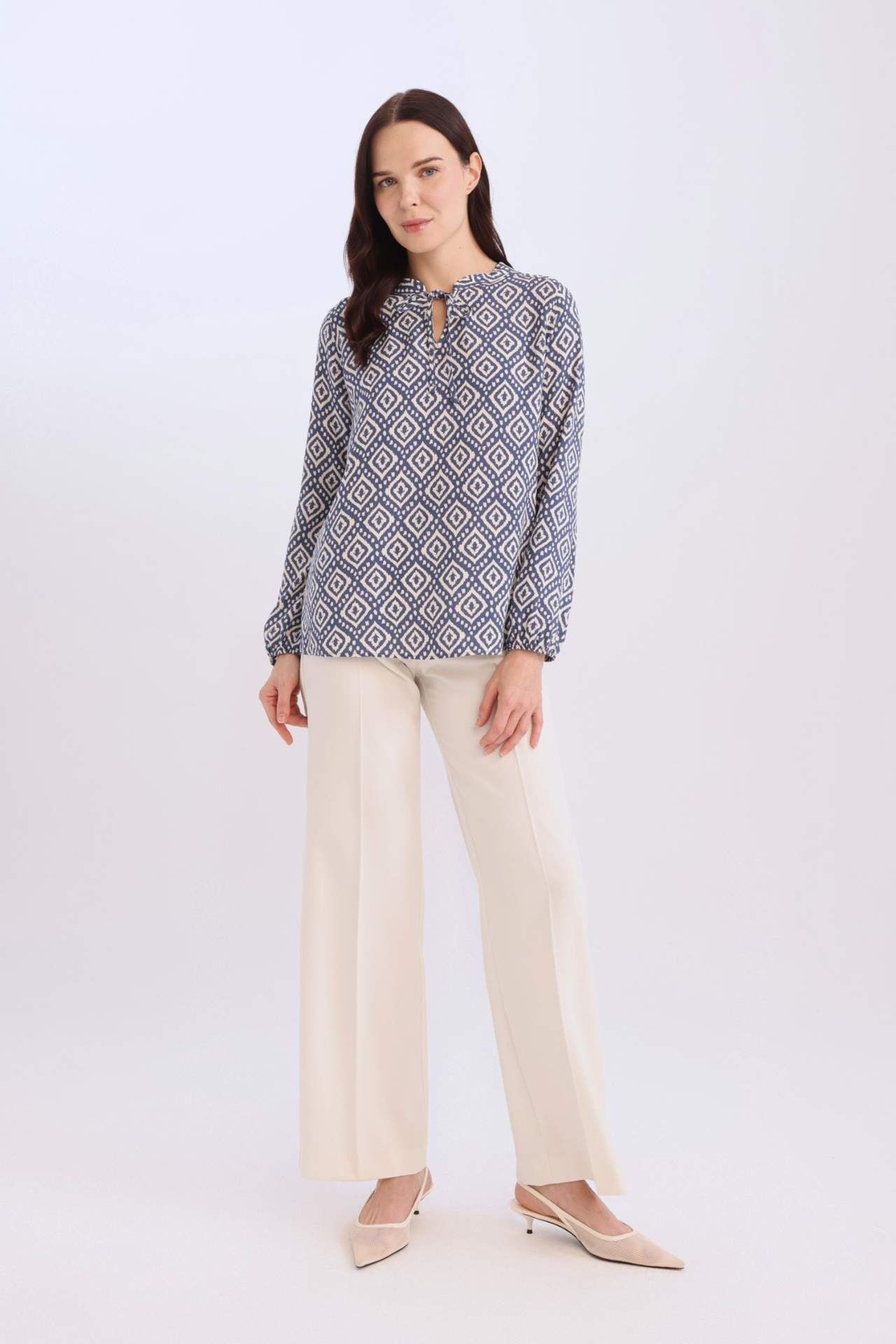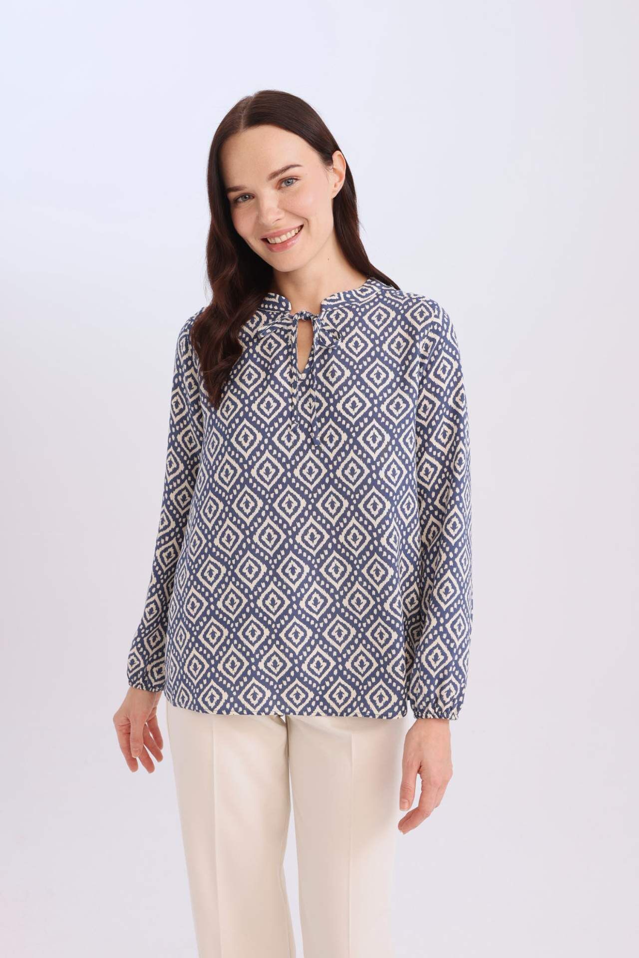 Regular Fit Bağcıklı Yaka Desenli Uzun Kollu Bluz, zarif bağcıklı yaka detayı ve şık desenleriyle feminen bir görünüm sunar. Rahat kesimi ve yumuşak kumaşıyla gün boyu konfor sağlar, hem günlük hem özel anlara uygun şık bir tercihtir. Viskoz 100%,Viskoz 100%,Viskoz 100%,Viskoz 100%,Viskoz 100%,Viskoz 100%,Viskoz 100%,Viskoz 100%,Viskoz 100%,Viskoz 100%,Viskoz 100% Manken Bedeni: Göğüs: 84 Boy: 1,74 Basen: 90 Bel: 62