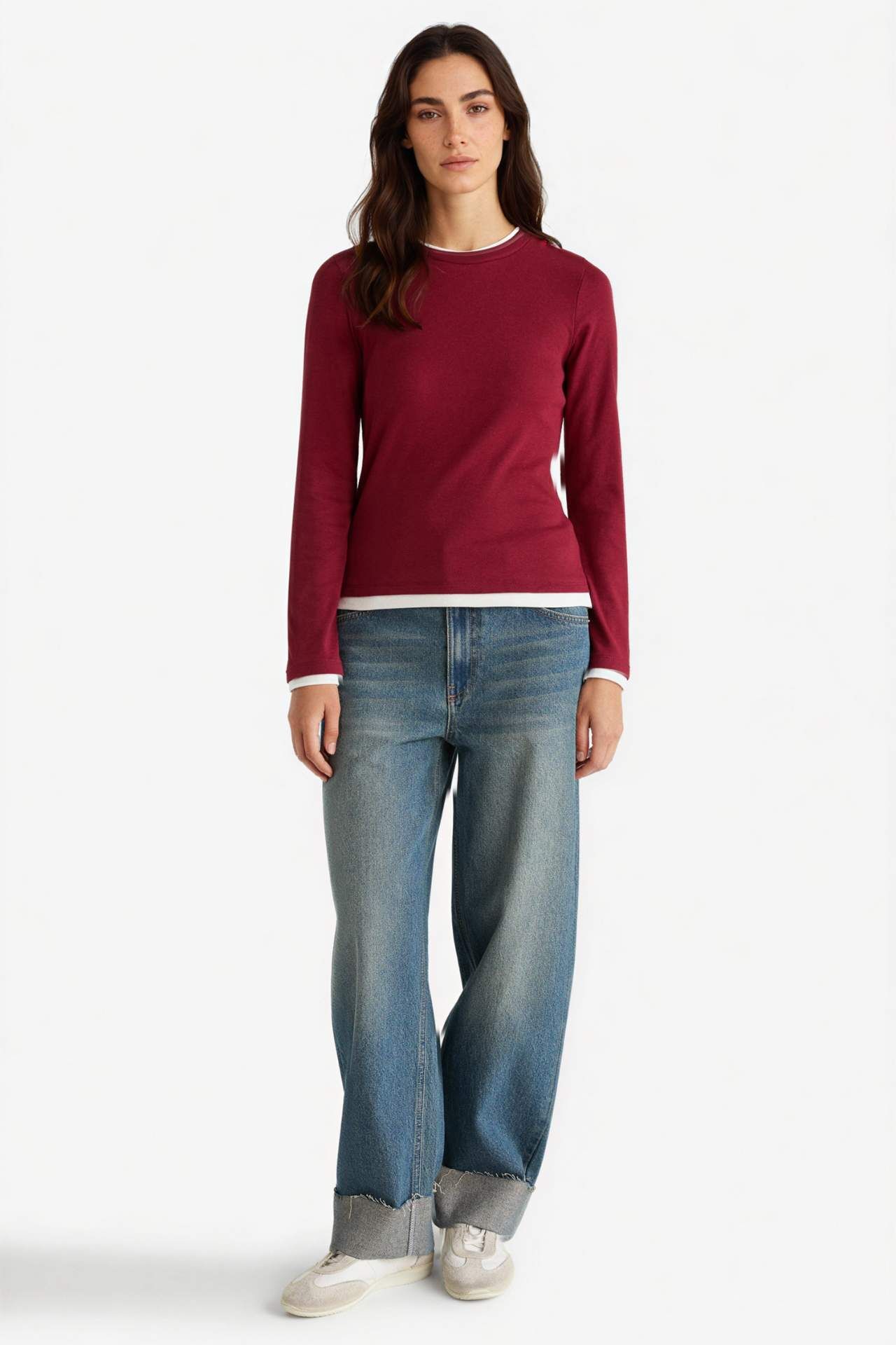 DeFacto Regular Fit Bisiklet Yaka Uzun Kollu Ribana Üst