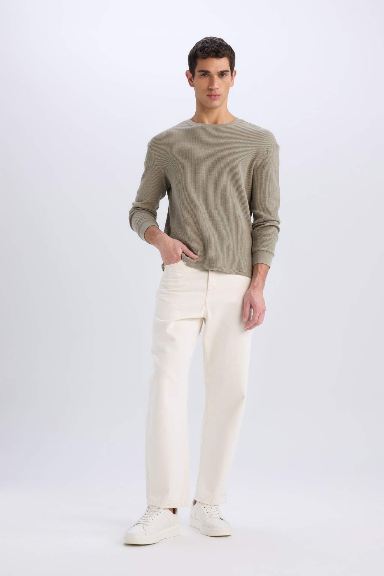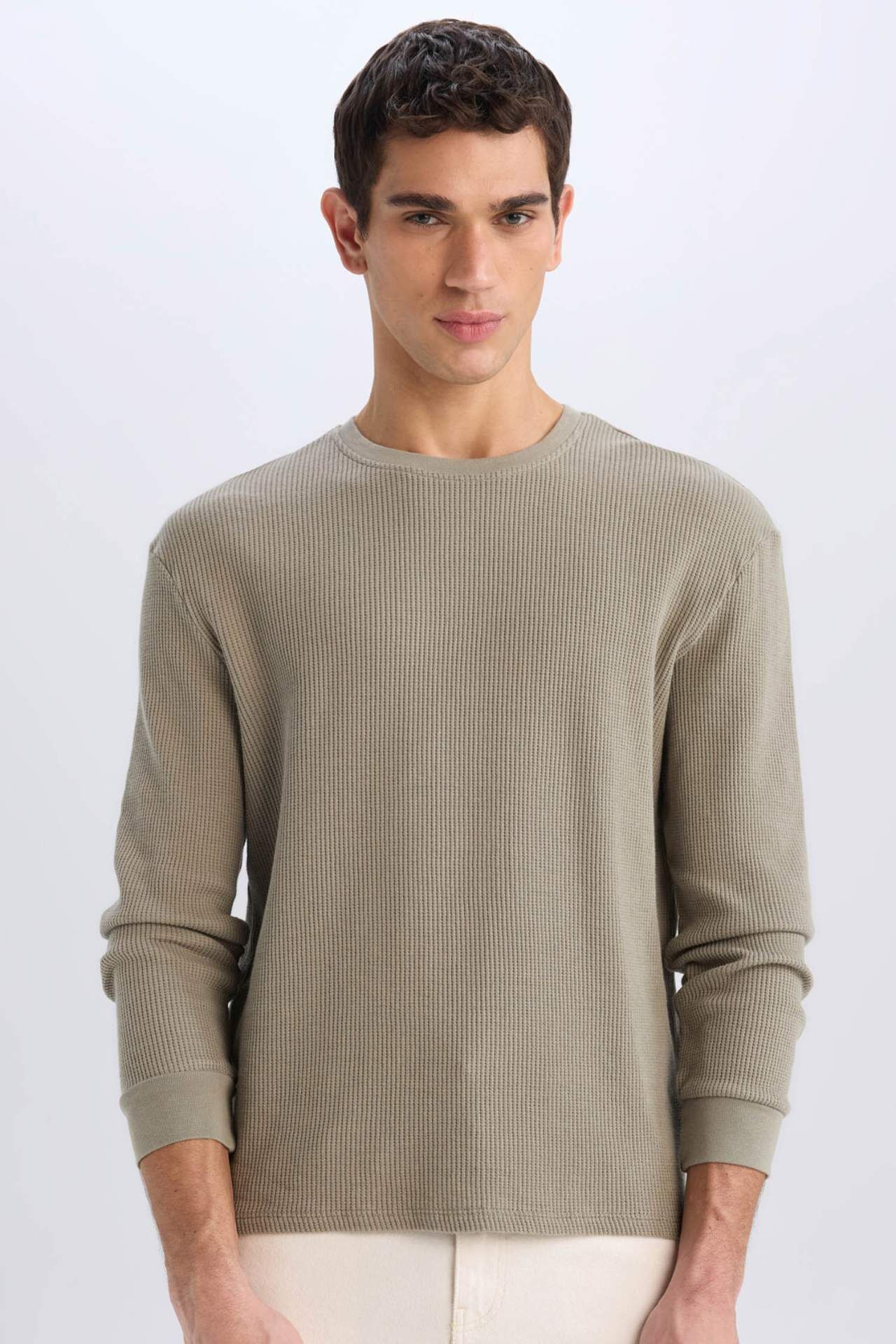 DeFacto Regular Fit Bisiklet Yaka Uzun Kollu Waffle Tişört D7504AX25SPKH454