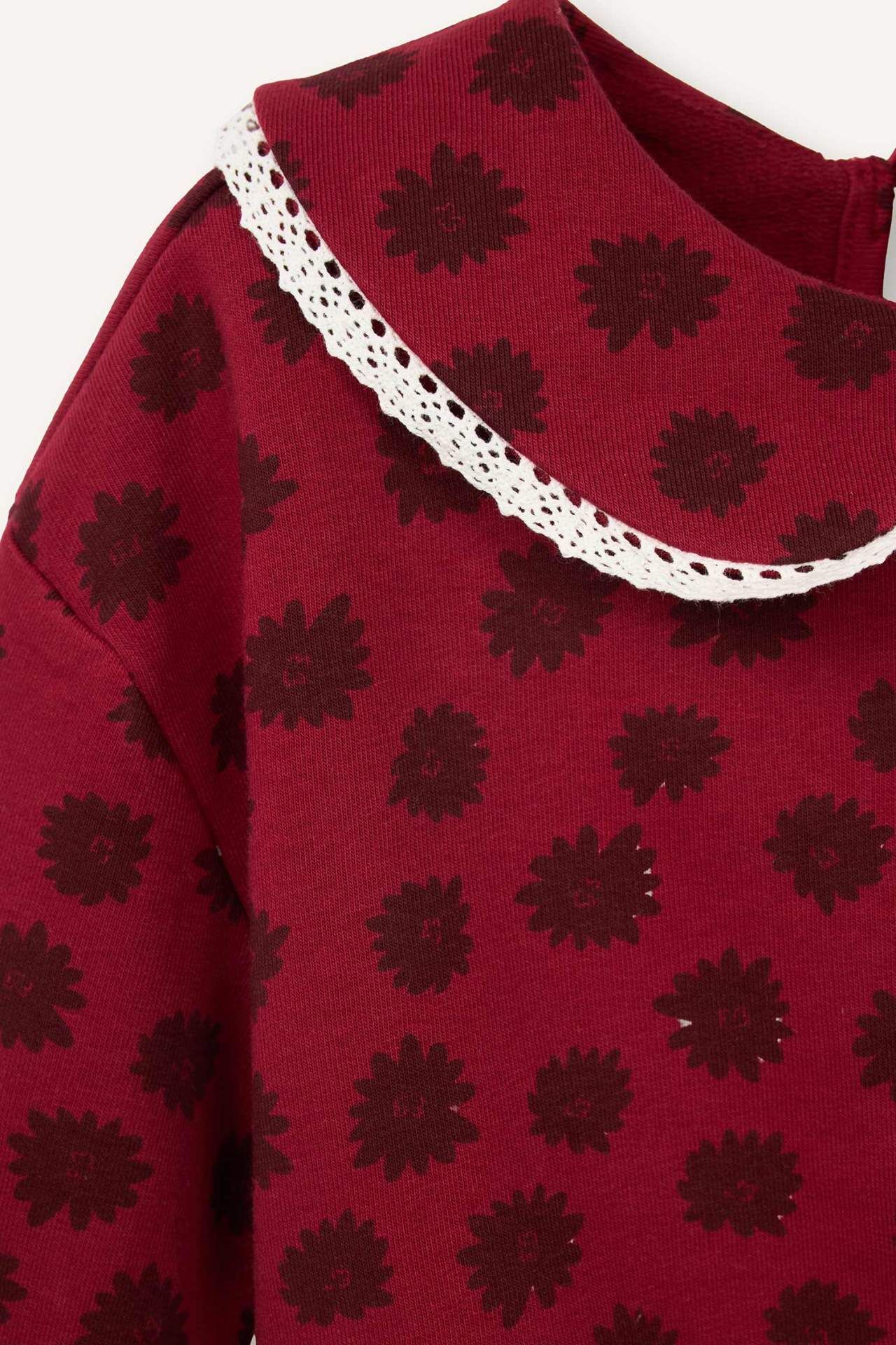 Regular Fıt Büyük Yaka Floral Kalın Sweatshirt Kumaşı Sweatshirt Kız Bebek