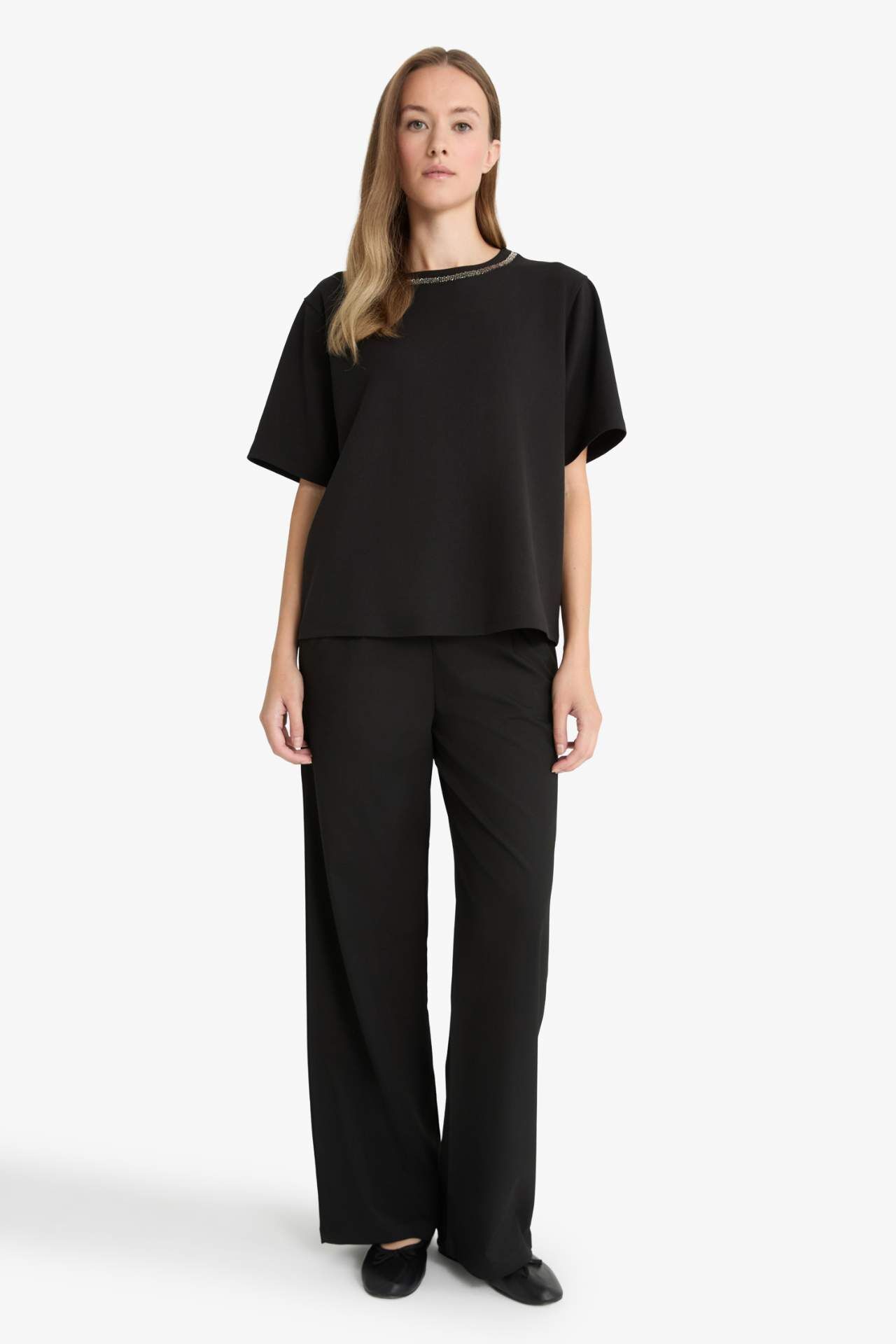 DeFacto Regular Fit Cep Detaylı Geniş Paça Pantolon F5413AX25AUBK81
