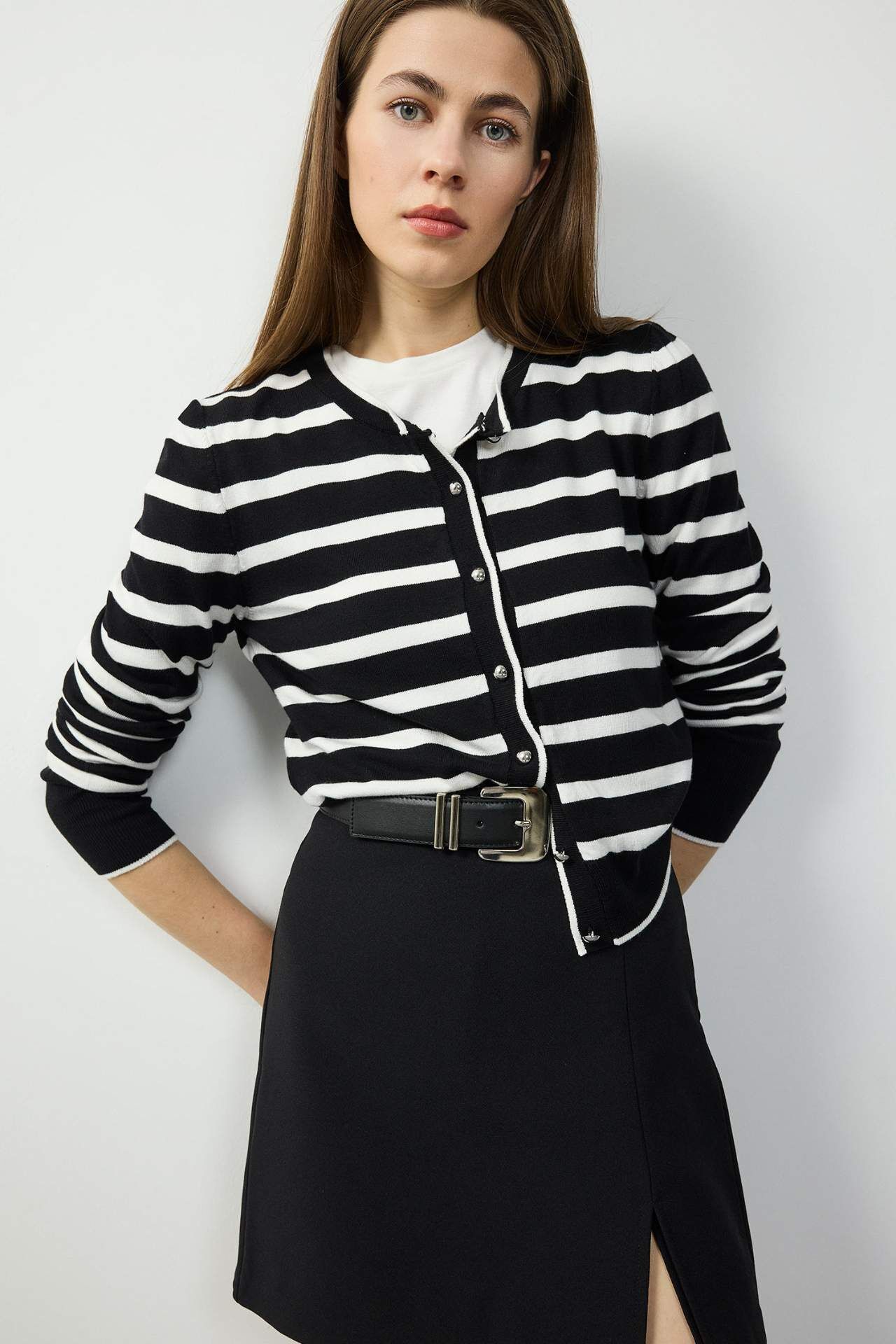 DeFacto Regular Fit Çizgili Bisiklet Yaka Düğmeli Triko Hırka