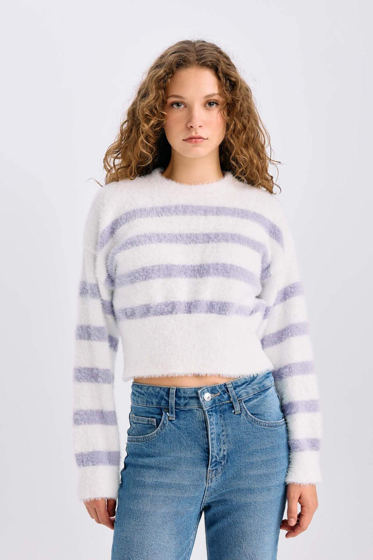DeFacto Regular Fit Çizgili Bisiklet Yaka Triko Kazak R1285AZ24CWPR68