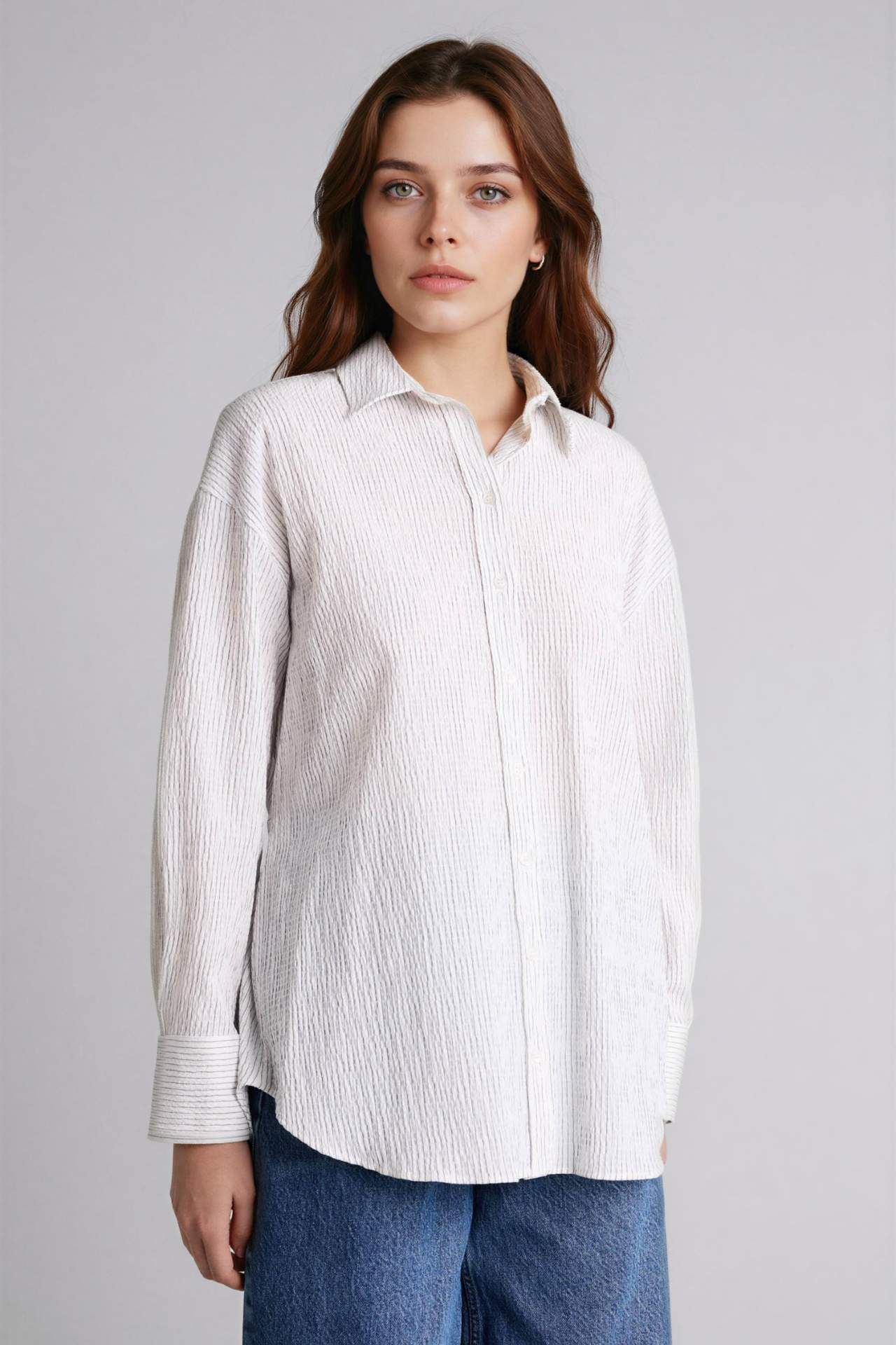 DeFacto Regular Fıt Çizgili Gofre Dokulu Uzun Kollu Tunik