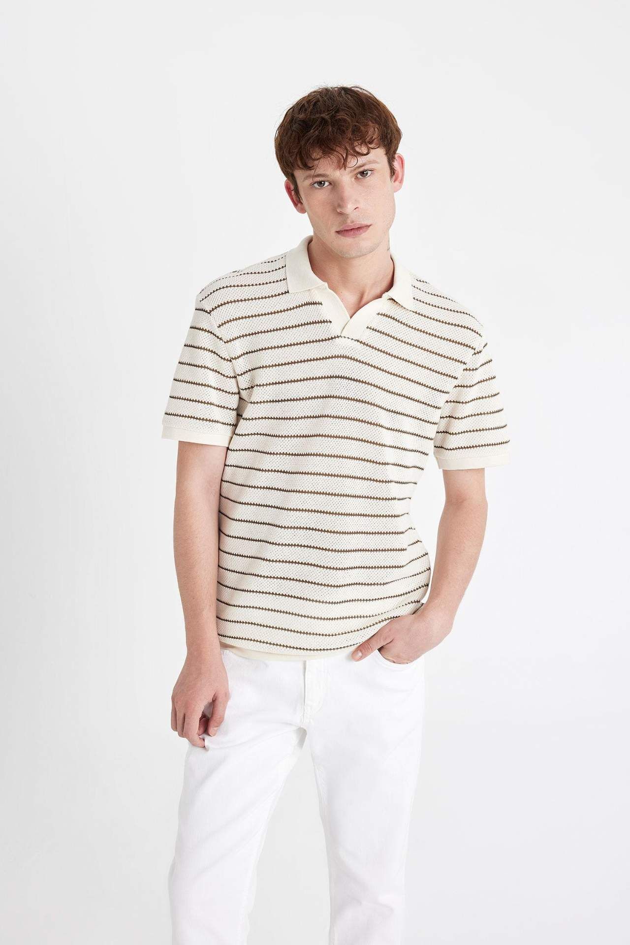 DeFactoFit Regular Fit Çizgili Kısa Kollu Triko Polo Tişört