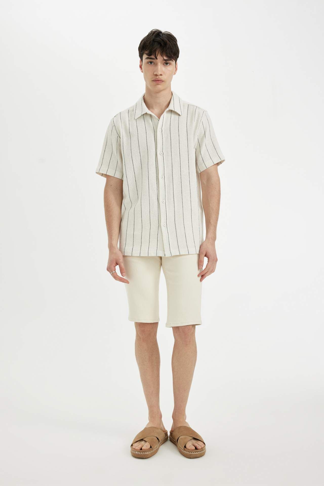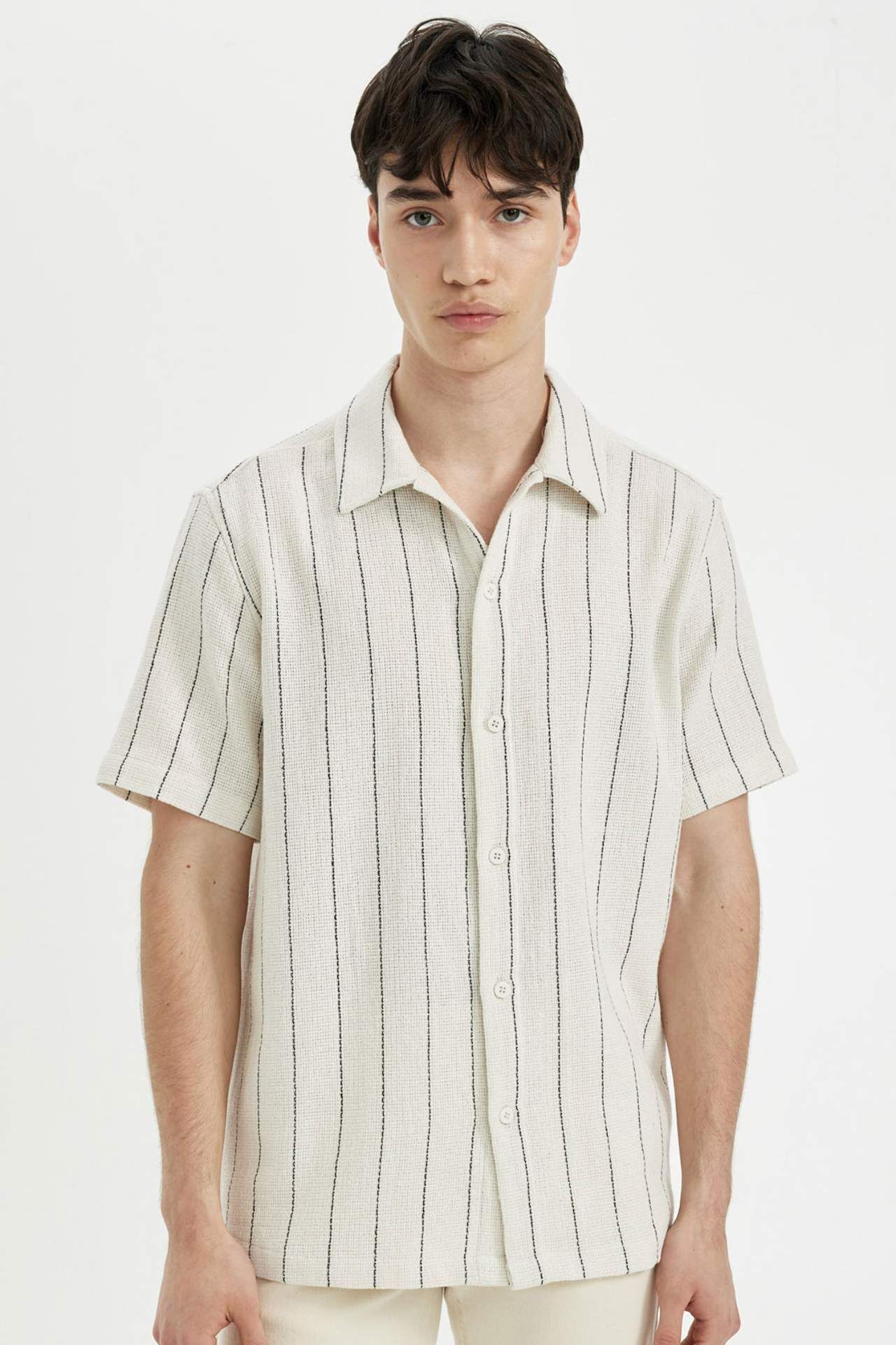 DeFactoFit Regular Fit Çizgili Pamuklu Kısa Kollu Gömlek A9330AX24HSBG700