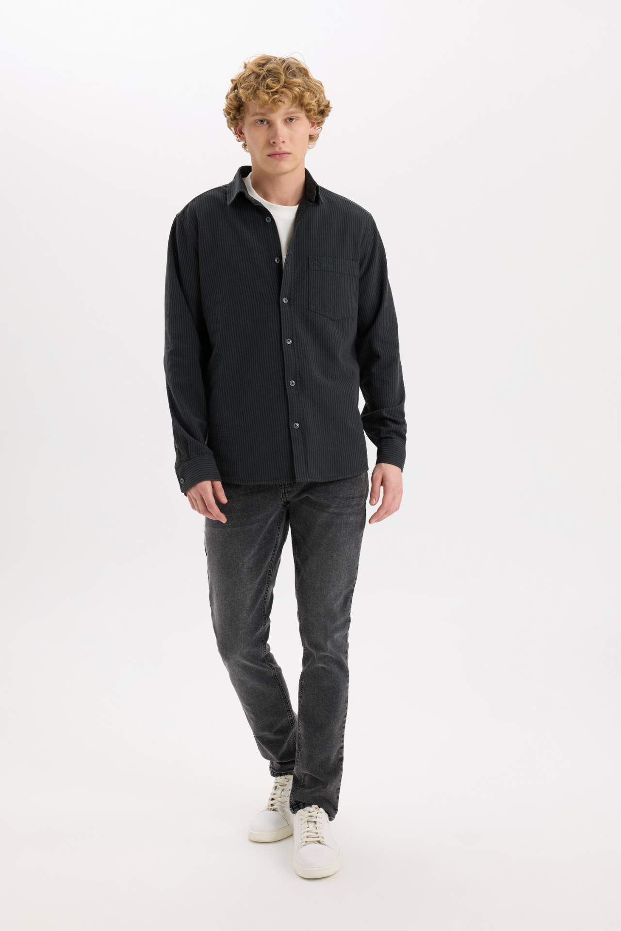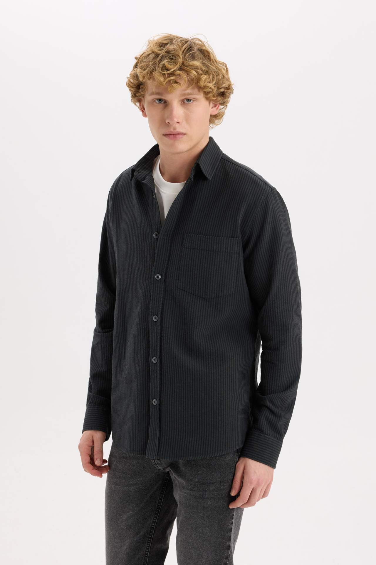 DeFacto Regular Fit Çizgili Pamuklu Uzun Kollu Gömlek E1944AX24AUAR104