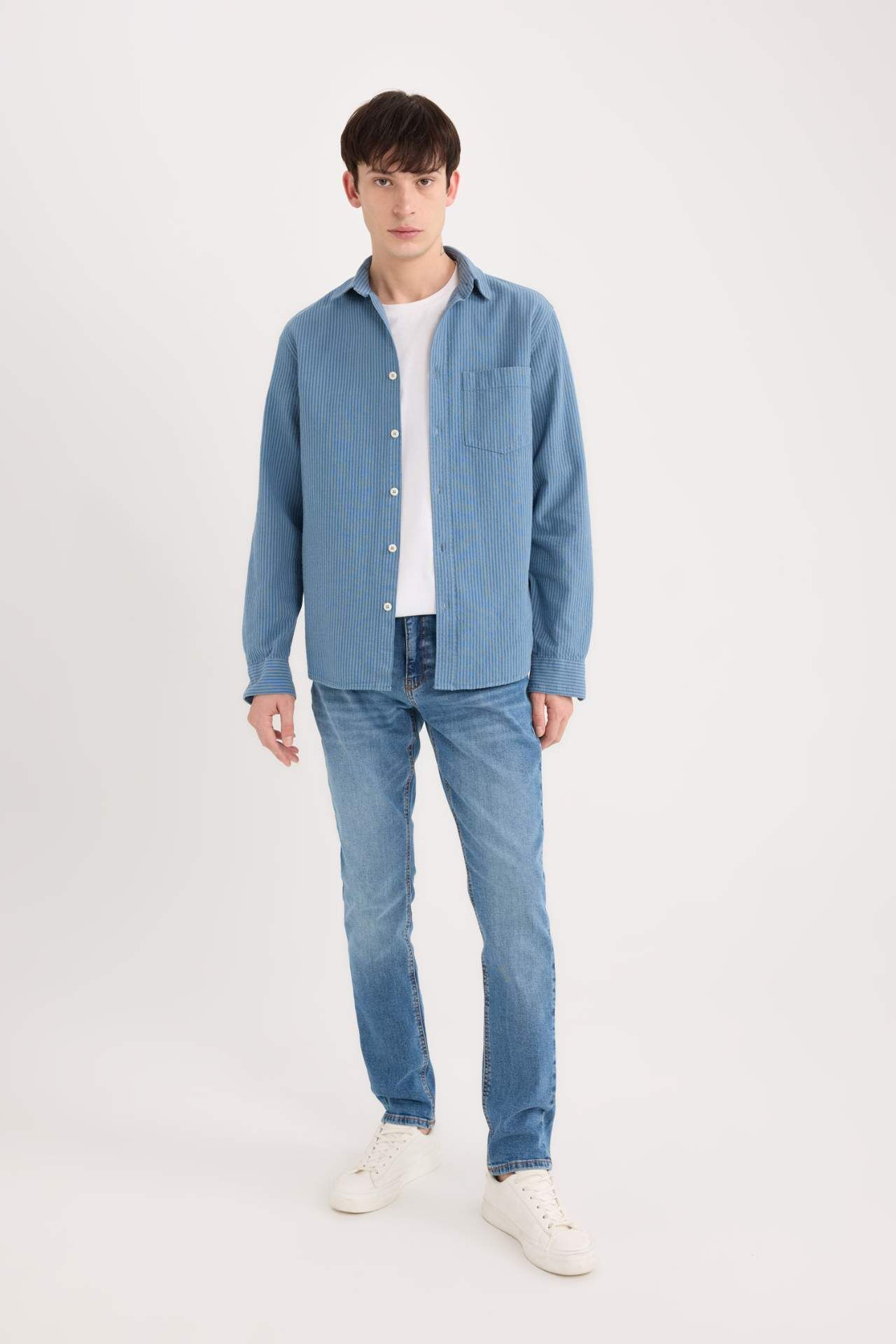 DeFacto Regular Fit Çizgili Pamuklu Uzun Kollu Gömlek E1944AX24AUIN242