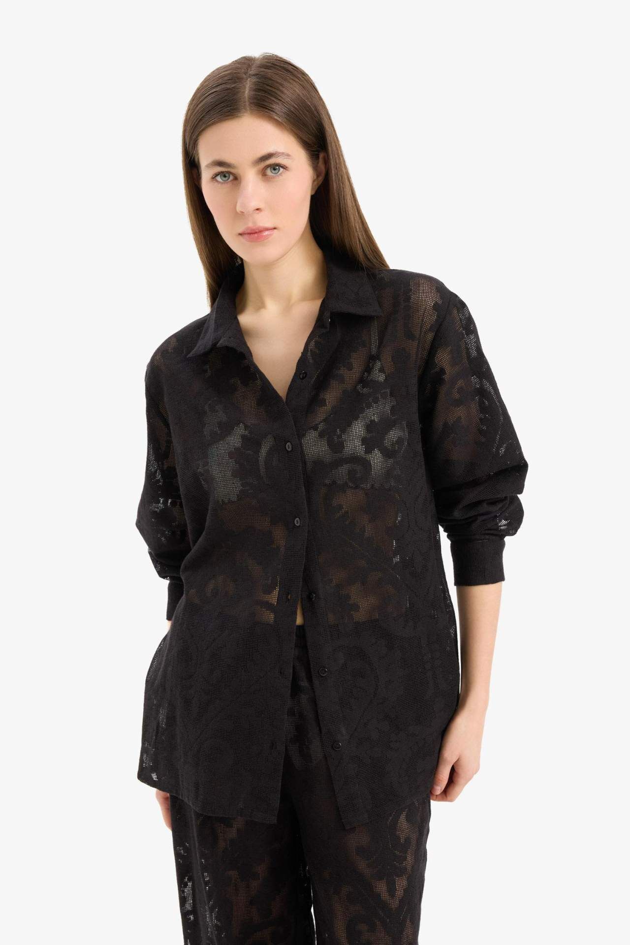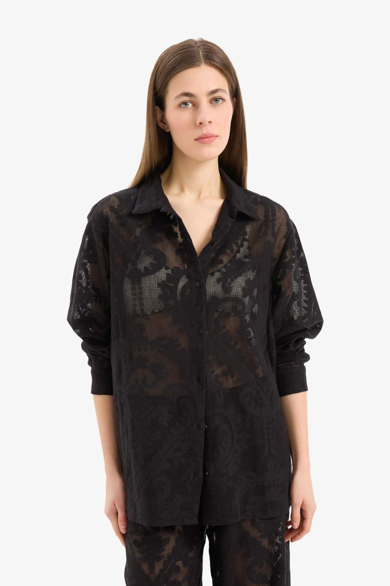 Regular Fit Dantel Detaylı Plaj Gömleği-Fall in Love D9768AX25SMBK27
