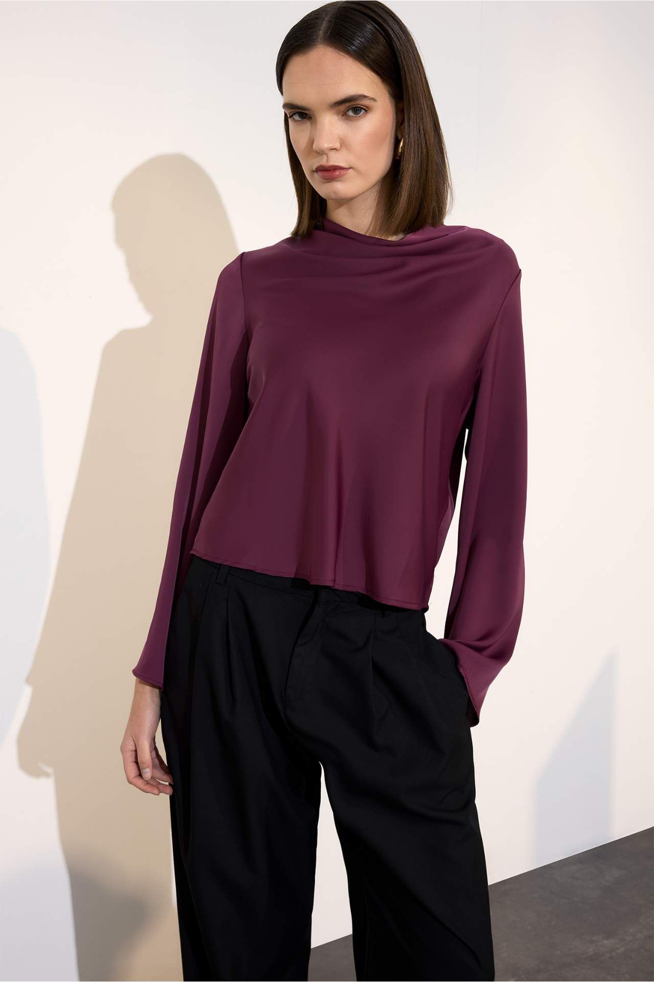 Regular Fit Degaje Yaka Saten Uzun Kollu Bluz