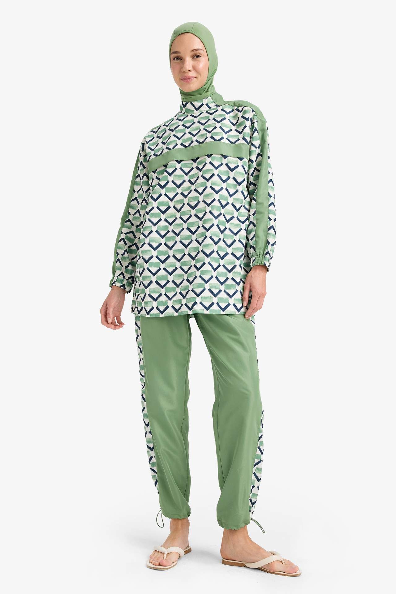 Regular Fit Desenli 3'lü Basic Düz Burkini Tesettür Mayo Takım