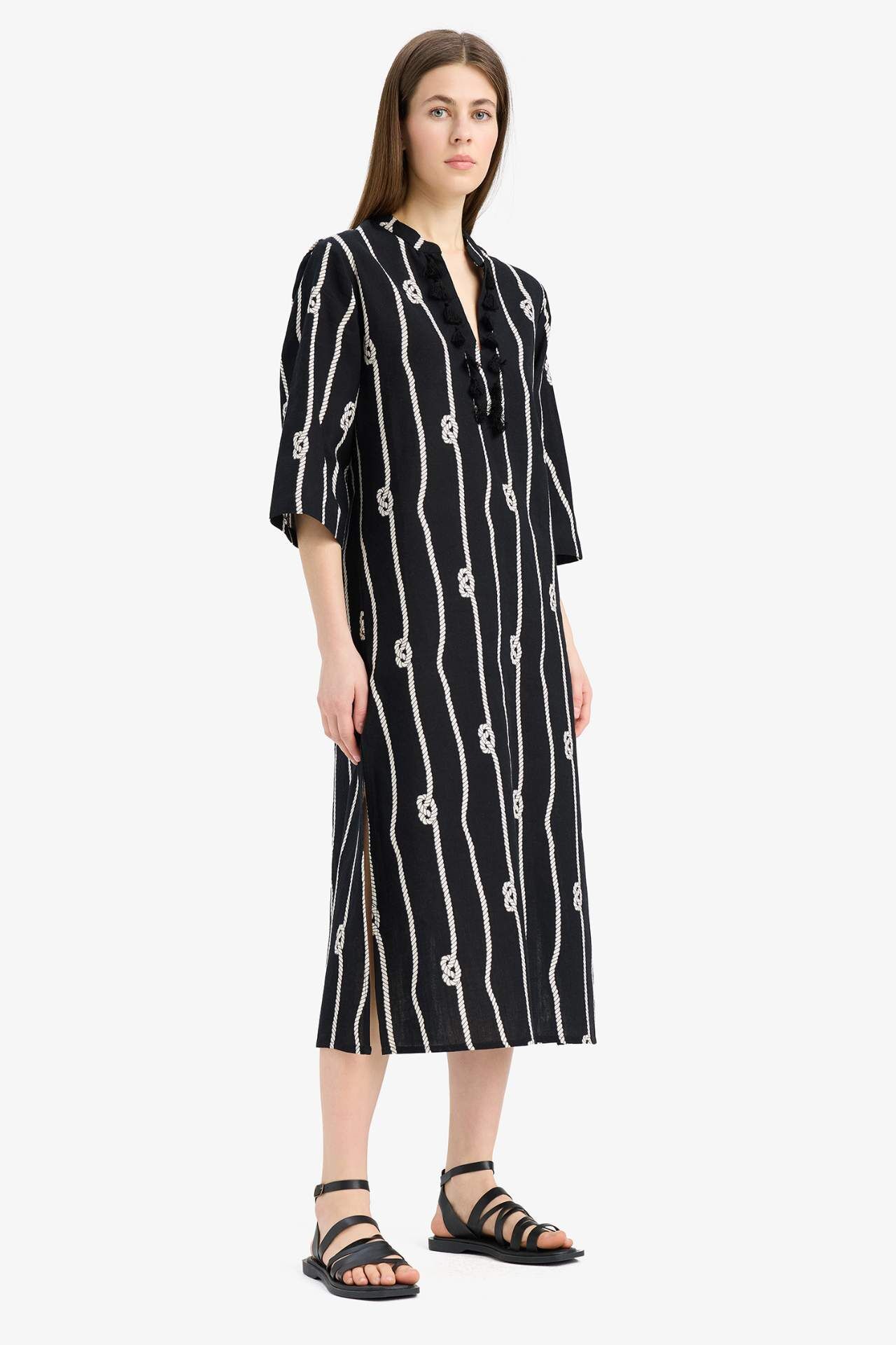 Regular Fit Desenli Pamuklu Midi Plaj Elbisesi-Fall in Love E5099AX25SPBK27