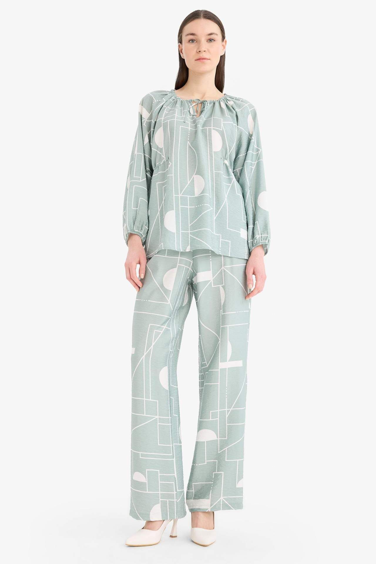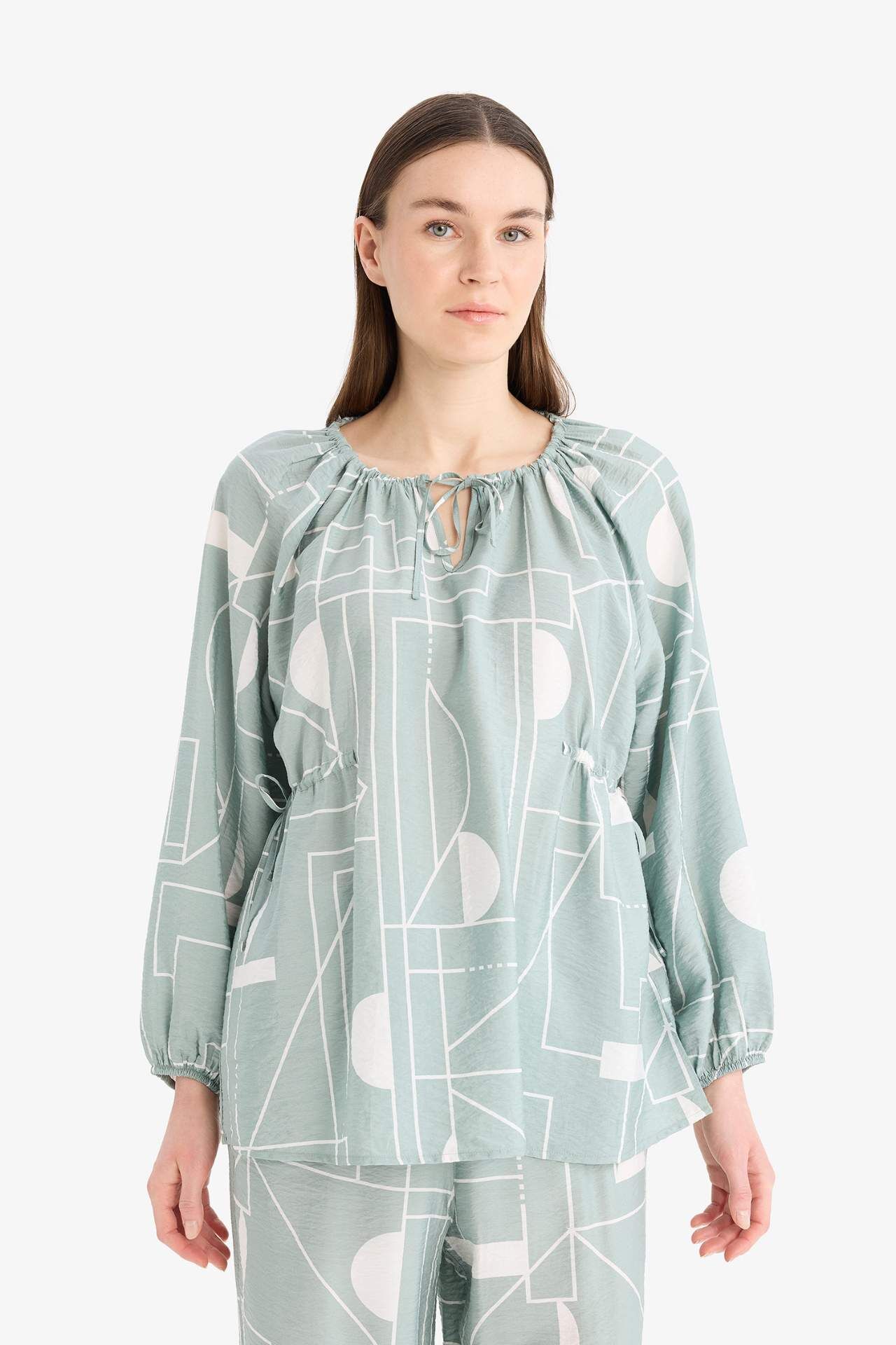Regular Fit Desenli Uzun Kollu Bluz