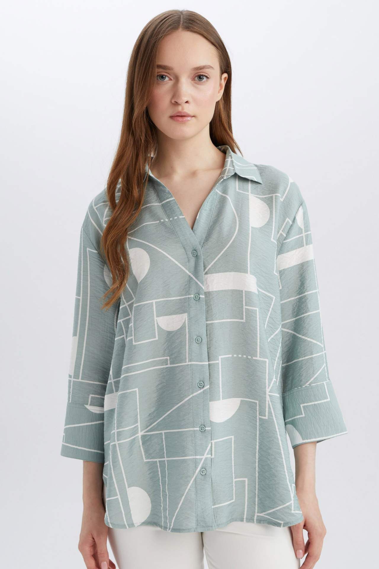 DeFacto Regular Fit Desenli Uzun Kollu Gömlek C3818AX25SPGN1110