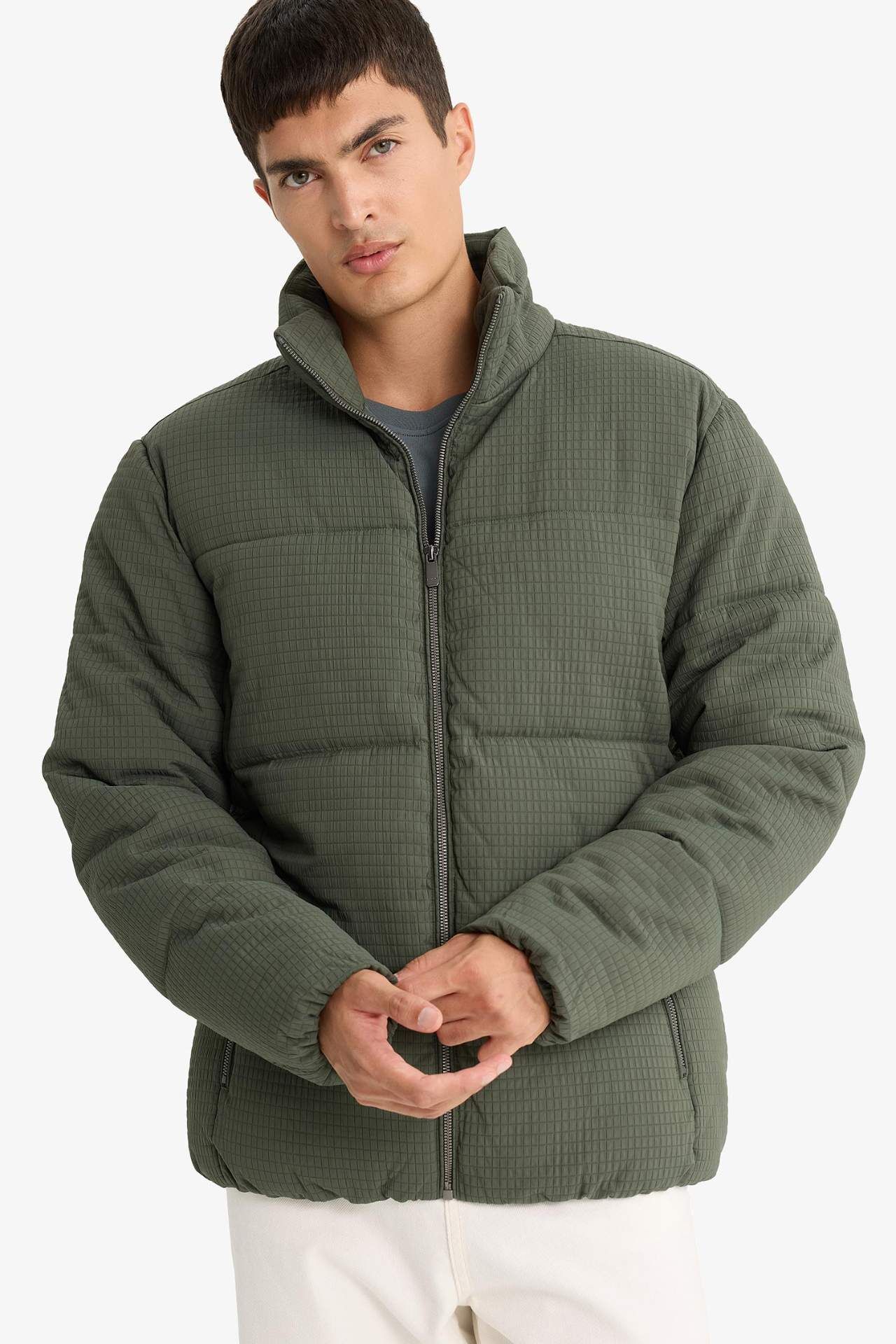 Regular Fit Dik Yaka Astarlı Fermuarlı Cepli Kışlık Mont