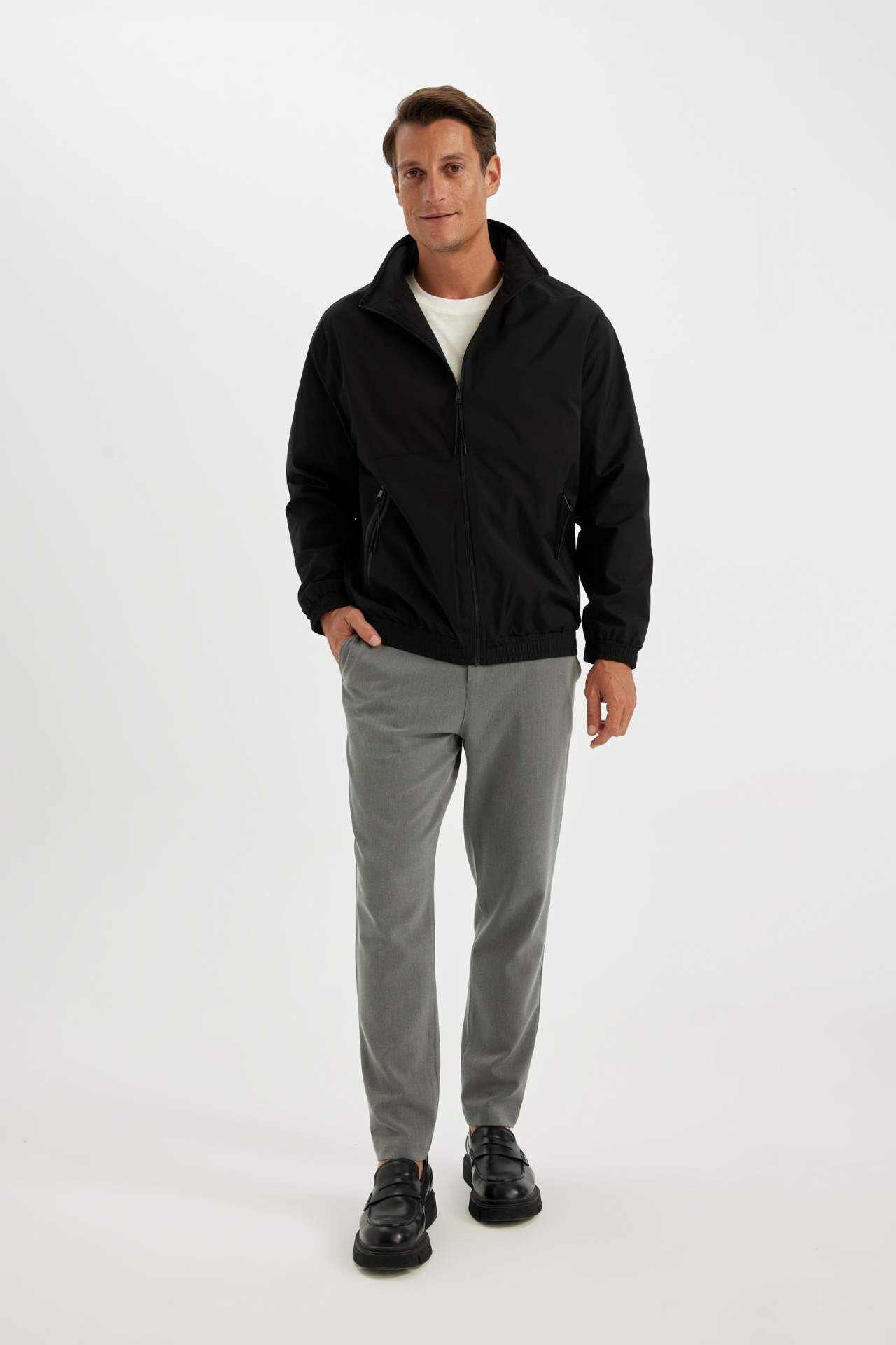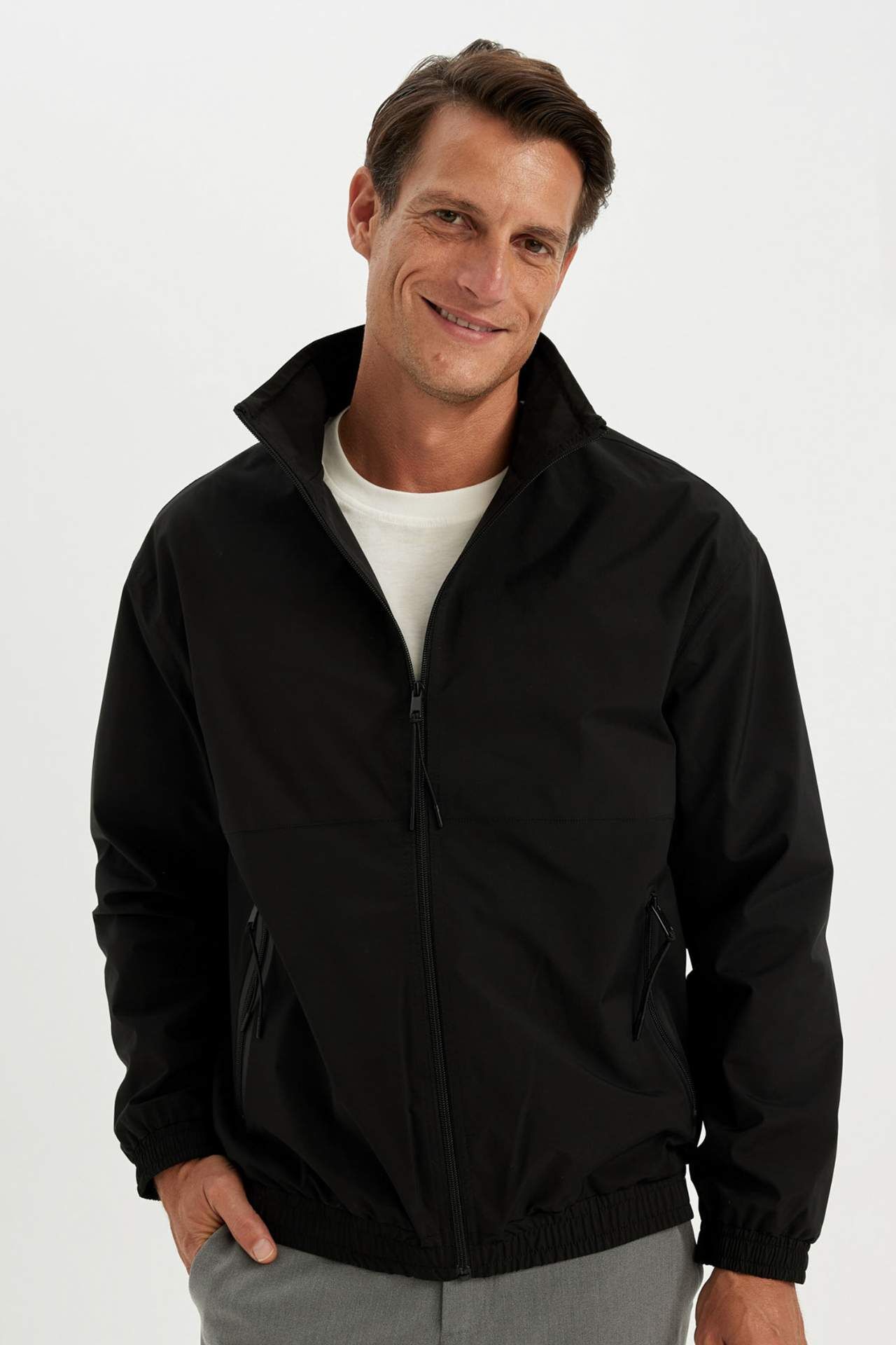 DeFacto Regular Fit Dik Yaka Fermuarlı Cepli Mevsimlik Hafif Mont Ceket