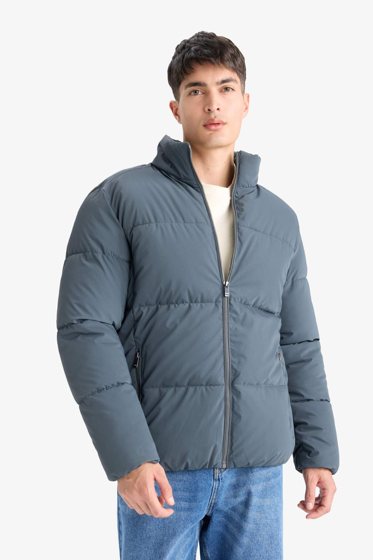 Regular Fit Dik Yaka Fermuarlı Su Geçirmez Mont F0307AX25WNGN1085